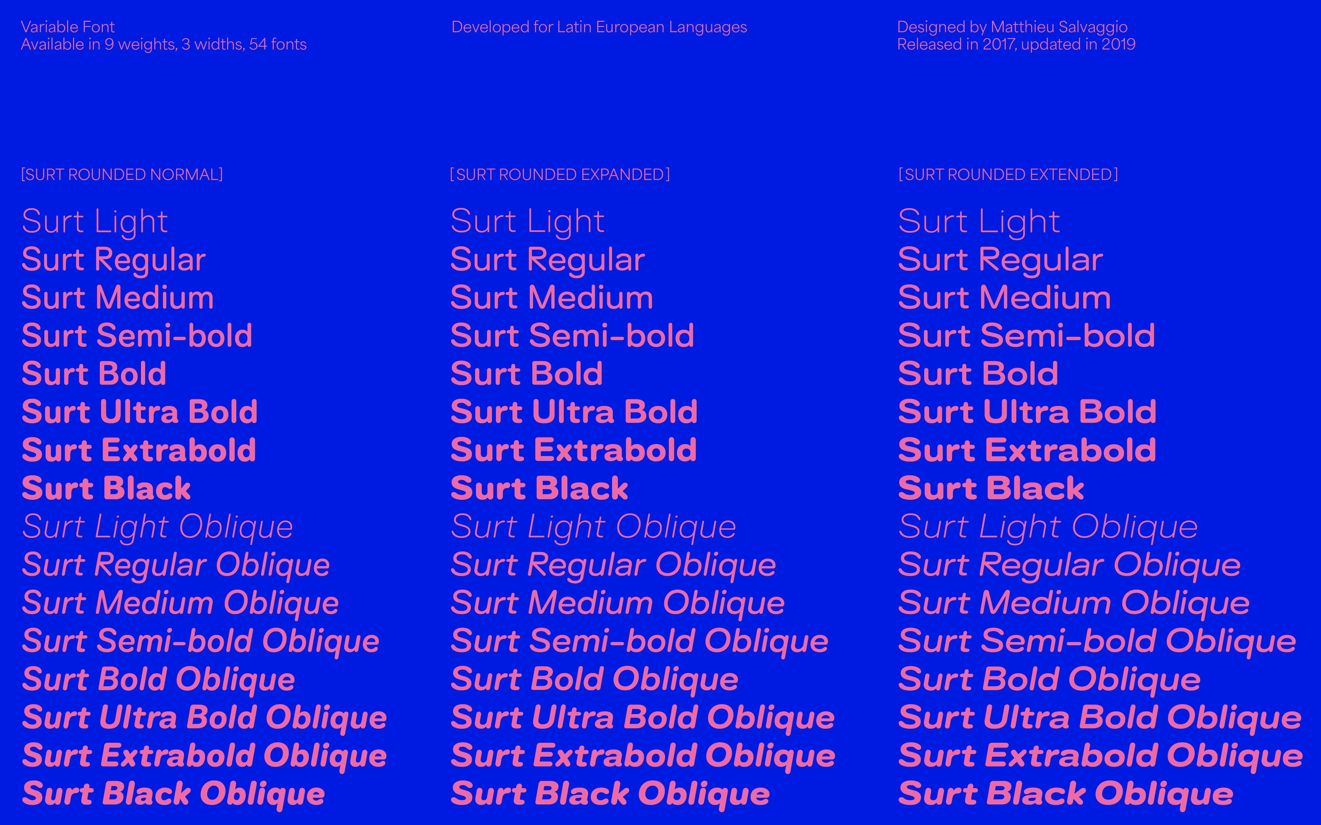 Surt is one of the foundry's bestsellers, and was missing a rounded version to add a fun aspect to this complete family.
