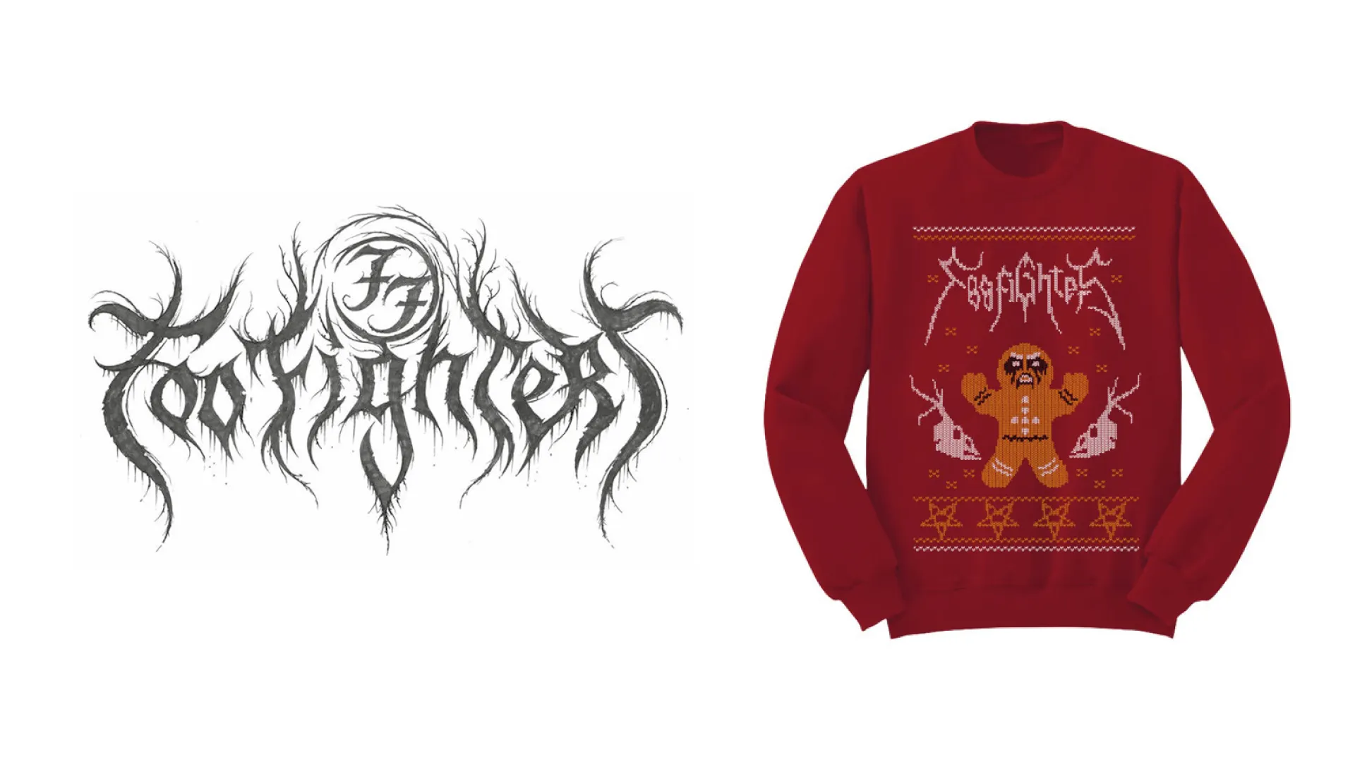 Ugly Christmas Jumper from The Foo Fighters VS Christophe's proposal. Szpajdel logo remains very serious regarding the parodical Foo Fighter version based on the Emperor logo.