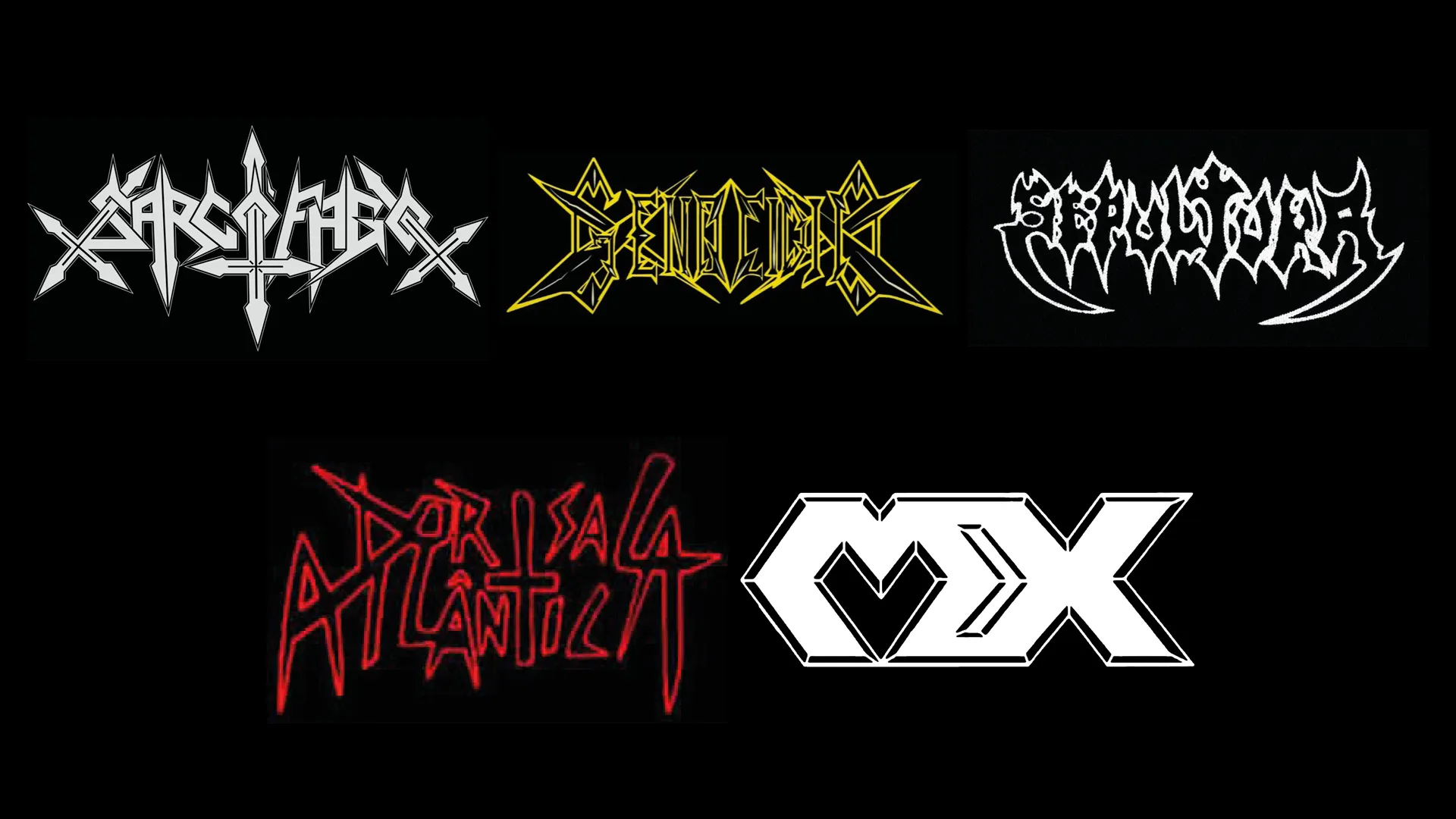 Sarcofago, Genocidio, first Sepultura logo,
