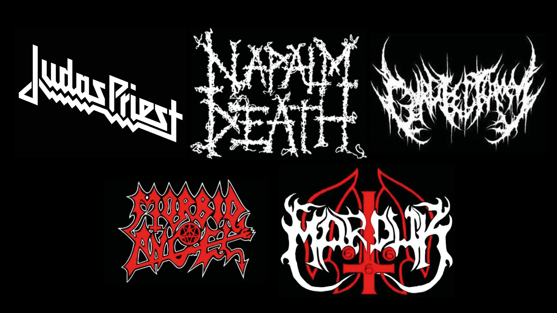 A Brutal Death Metal logo will normally be an illegible logo with lots of ligaments: Gurglectomy, Vaginal Dissection.