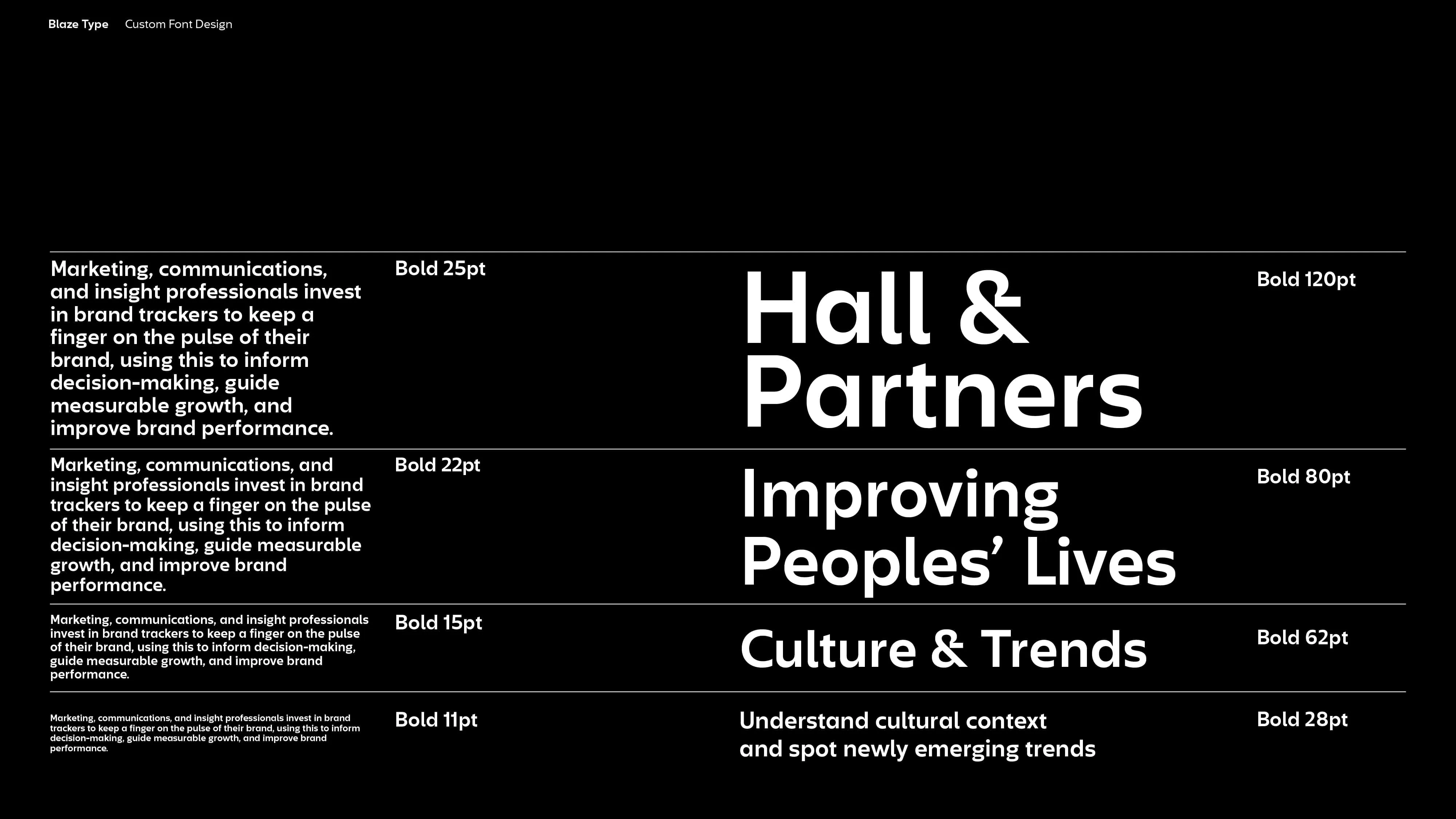 On its website, BlazeType markets "retail" typefaces, i.e. those produced specifically for resale to any agency or advertiser. In contrast, "custom" is really an order for a specific typographic design, adapted to the needs of an advertiser. So, generally speaking, we work with a design agency, graphic designers and the advertiser's art directors (the client directly) to set up an artistic direction and define a visual identity through typography.
