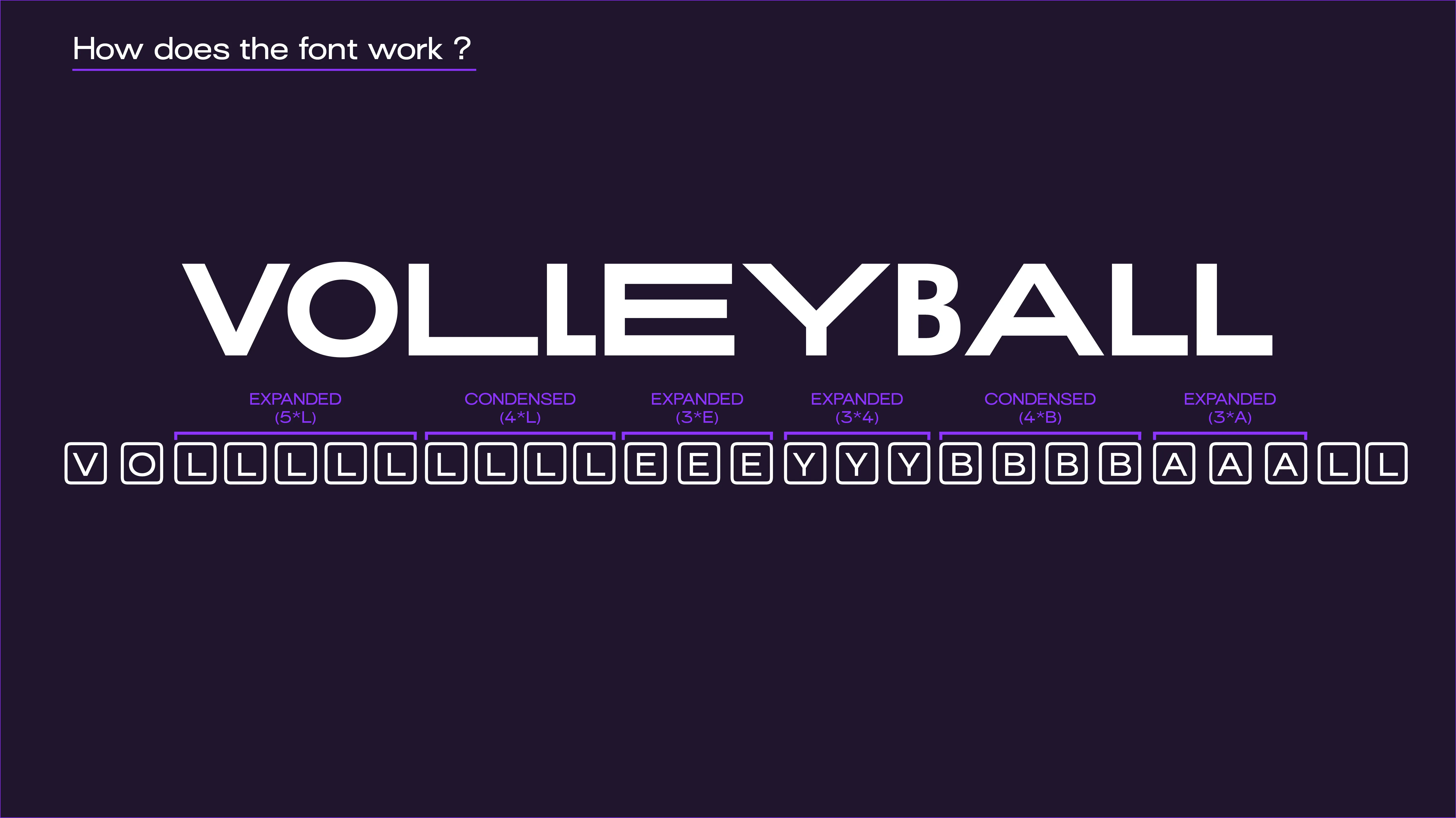 Volleyball World custom font is also a great use of OpenType features: adding extra letters can expand the width of the character
