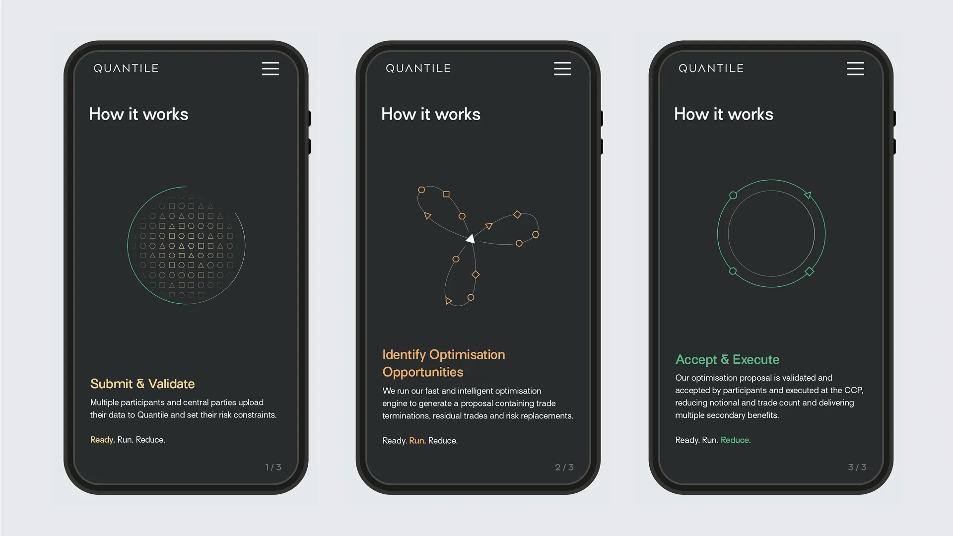 Quantile’s compression and optimization services have already eliminated USD trillions of gross notional of OTC derivatives and billions of dollars in margin. Created in 2017 they are relatively young but have quickly become an established name. Their branding needed an overhaul to reflect their market-leading position, and a new website was required to provide greater detail on their range of services and to create a destination for their thought-leadership content and market commentary. Our Response: It became clear that a radical approach was required. We created an unconventional color palette and built a generative design tool that allows Quantile to produce their own unique brand imagery. As important as what Quantile looked like is how they sound. We crafted a value proposition, series of key messages and tone of voice document allowing Quantile to speak with purpose, punch and passion – and their own distinctive personality. Surt is used throughout.