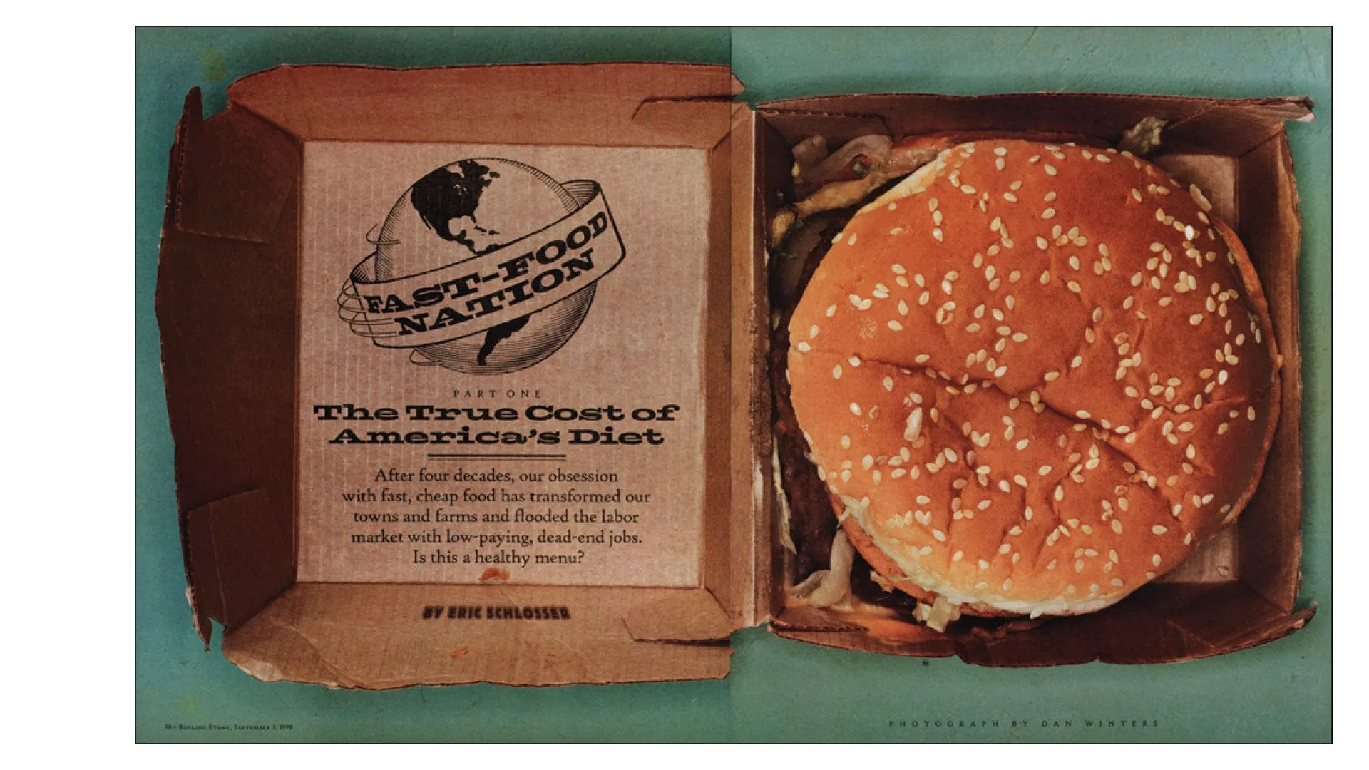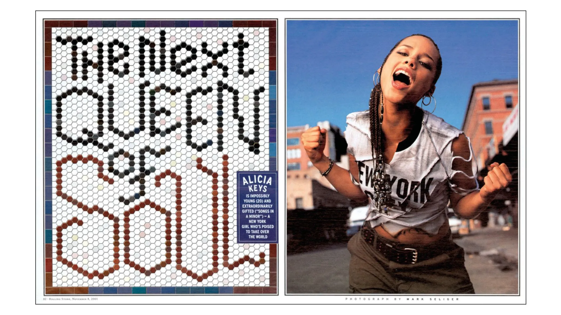Double spread pages of Rolling Stone magazine by Gail Anderson.
