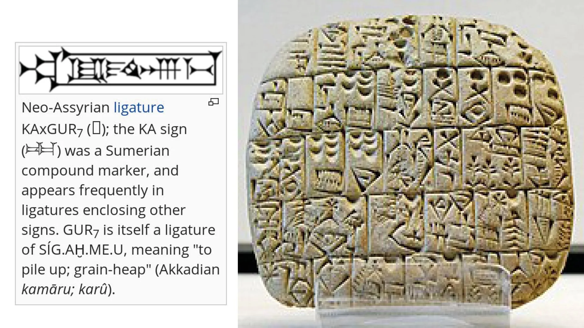 During Sumerian antiquity, cuneiform tablets (c. 3500 BC, c. 200 BC) may feature several characters side by side, rather than the usual spacing. The points of contact between these characters correspond to a common layout: the scribe saves himself a gesture by joining each character. If reading is assured, then saving both space and gesture saves writing and reading time. Later, these linked characters will take on their own autonomy to represent autonomous concepts. This is the advantage of ideographic or logo-syllabic writing systems, which allow for combinations of signs to create new ones.