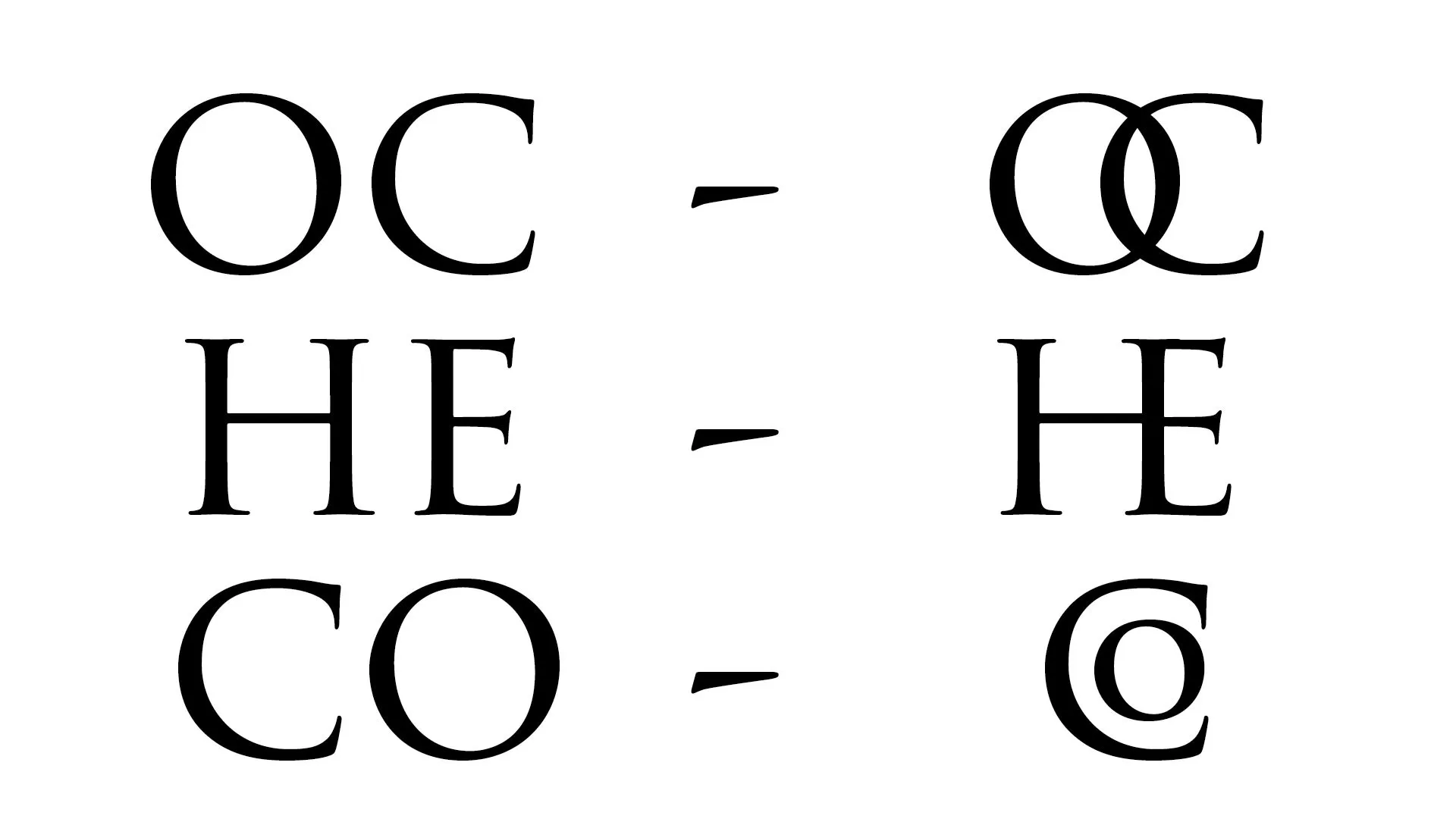 Merging: identical segments between two letters are pooled. The letters touch, making reading more difficult as they appear as a single sign.
