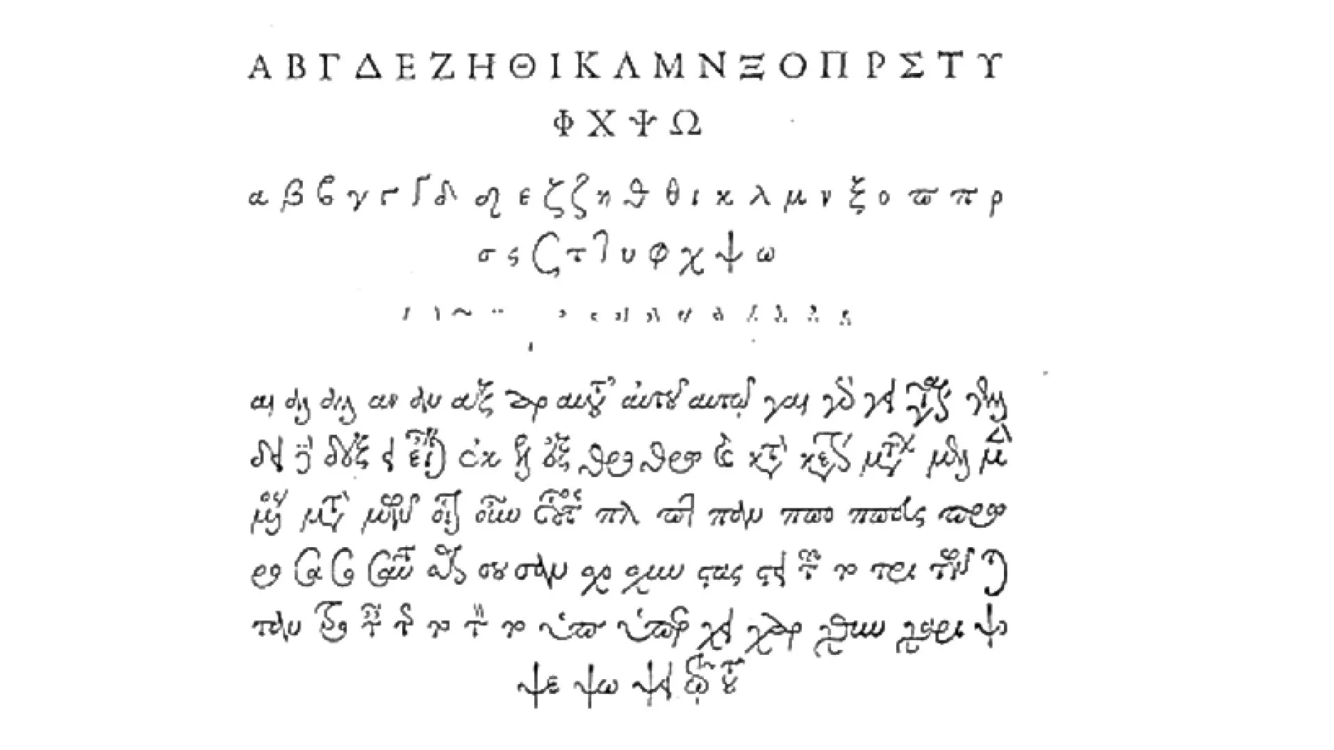 Other alphabets were not forgotten, and on November 2, 1540, François Iᵉʳ placed an order for a Greek typeface, in several sizes. Robert Estienne (1503-1559), the King's printer, turned to Claude Garamond (1499/1515 - 1561) to engrave the punches: the gros romain type set (16 points) was completed in 1543, the cicéro (9 points) in 1546, and the gros parangon (20 points) in 1550. Nearly 400 ligatures reproduce a set of letters that can also be used to compose numerous abbreviations.