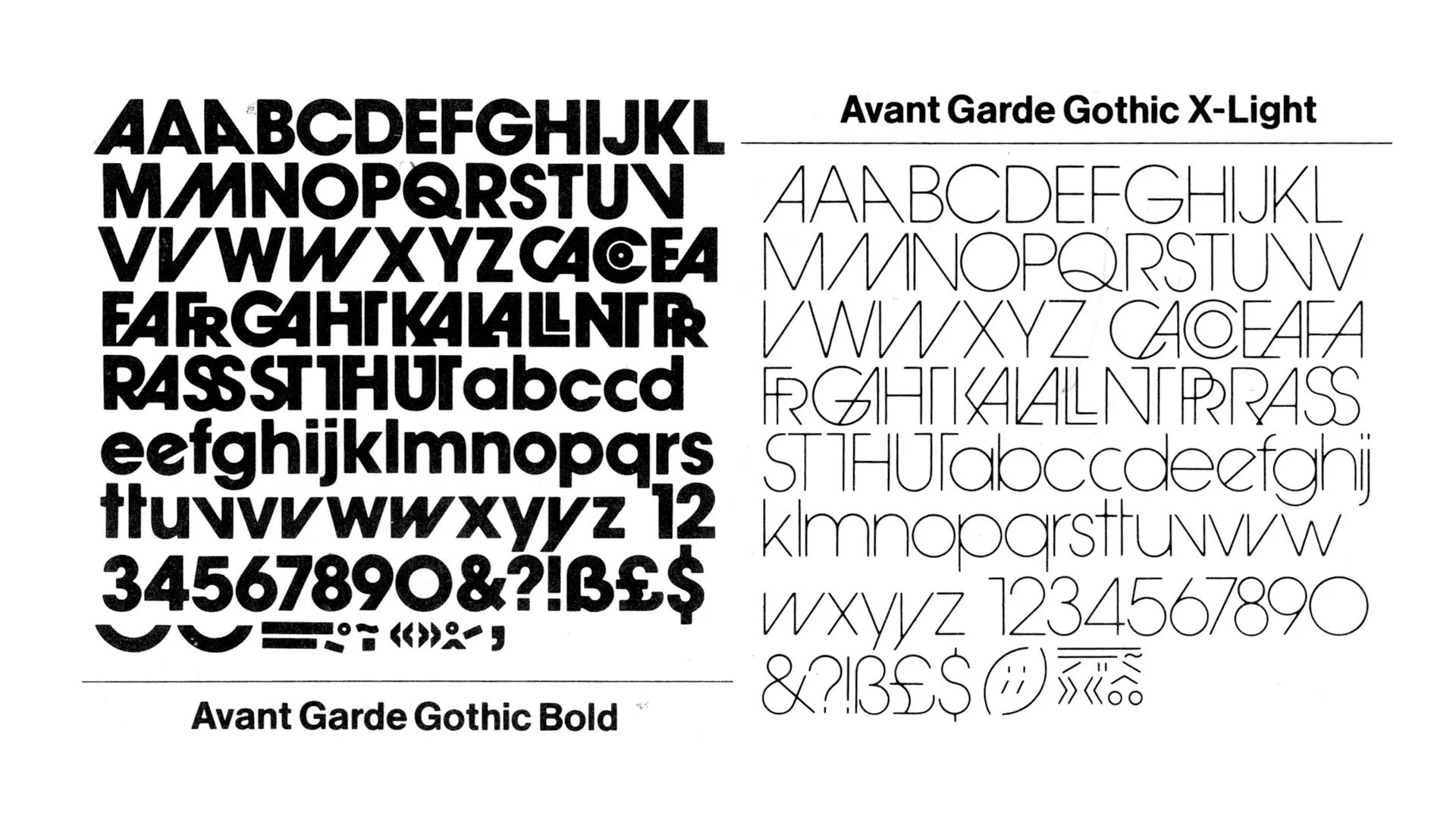 Later, in 1970, Lubalin took over his logotype and developed, at the ITC foundry and with the help of his assistant Tom Carnase (1939-), a complete typography: capitals, lowercase, numerals and an extensive set of ligatures faithful to the original model.