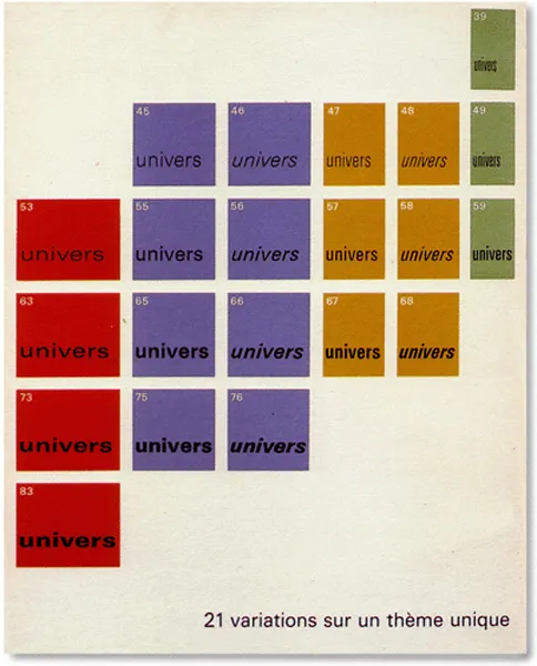 Univers, Adrian Frutiger, 1957, Fonderie Deberny & Peignot, Paris, France.