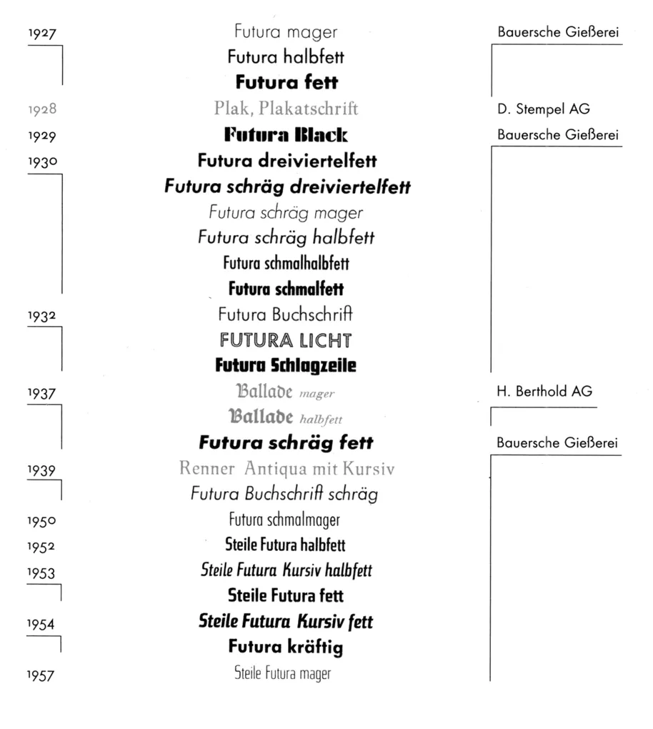 Paul Renner's type design is mostly the extension of the Futura family from 1927 till 1957.