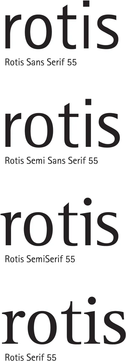 In 1988, however, it was the pope of German modernism Otl Aicher (1922-1991) who published a family that broke with tradition even more. Rotis brings together serif, sans-serif, semi-serif and semi-sans-serif styles, thus bringing together the antagonism of classical typography in a coherent style. Aicher proves that the logic of the past is not necessarily relevant today. Tradition, if it is to endure, must be understood and reinterpreted while retaining its essence.