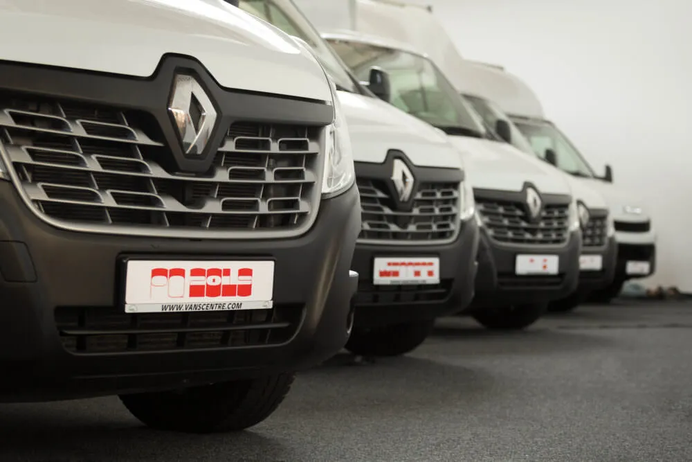 A group of five white trucks is parked in the monumental Výstaviště Praha Holešovice – Central Hall of the Industrial Palace in Prague. Usually this is the kind of vehicle that transports works of art to an exhibition. Here, as a part of the Prague Quadrennial, the trucks themselves are the exhibition space.