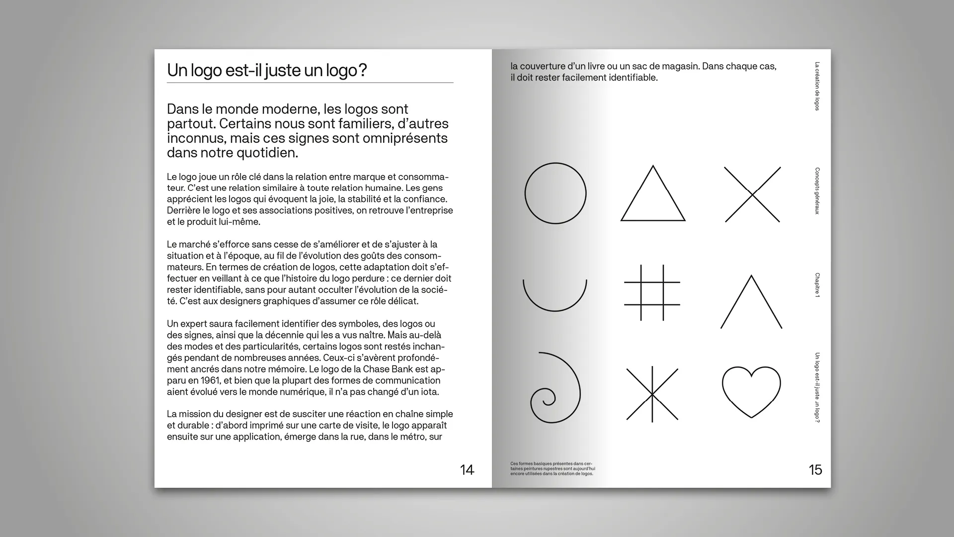 This book is an excellent introduction to logo design for students, as a complement to their art school courses. However, the theoretical approach is sometimes too light, especially in its vocabulary. The historical aspect is completely overlooked, even though it can provide vital food for thought and understanding.