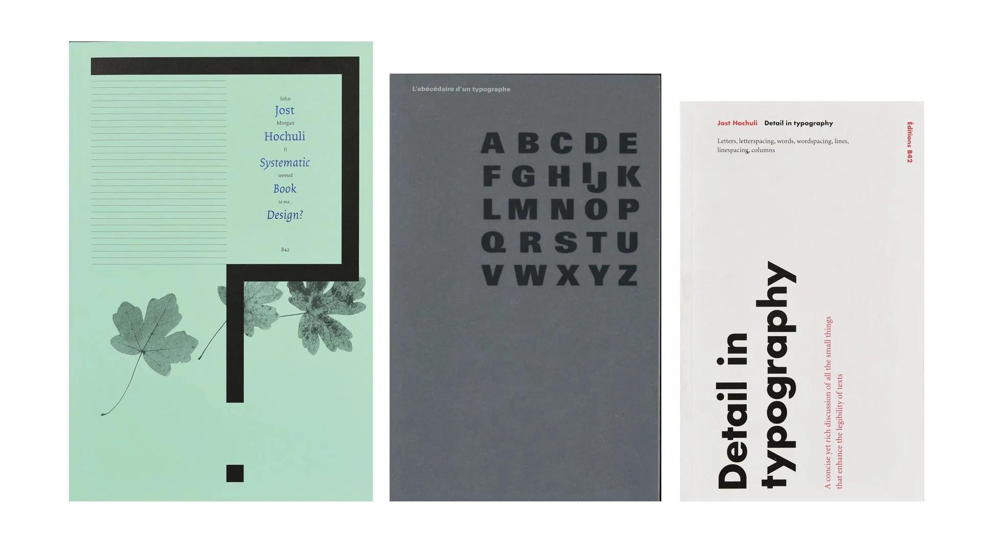 Three of Jost Hochuli books published by B42 in French and sometimes in English.