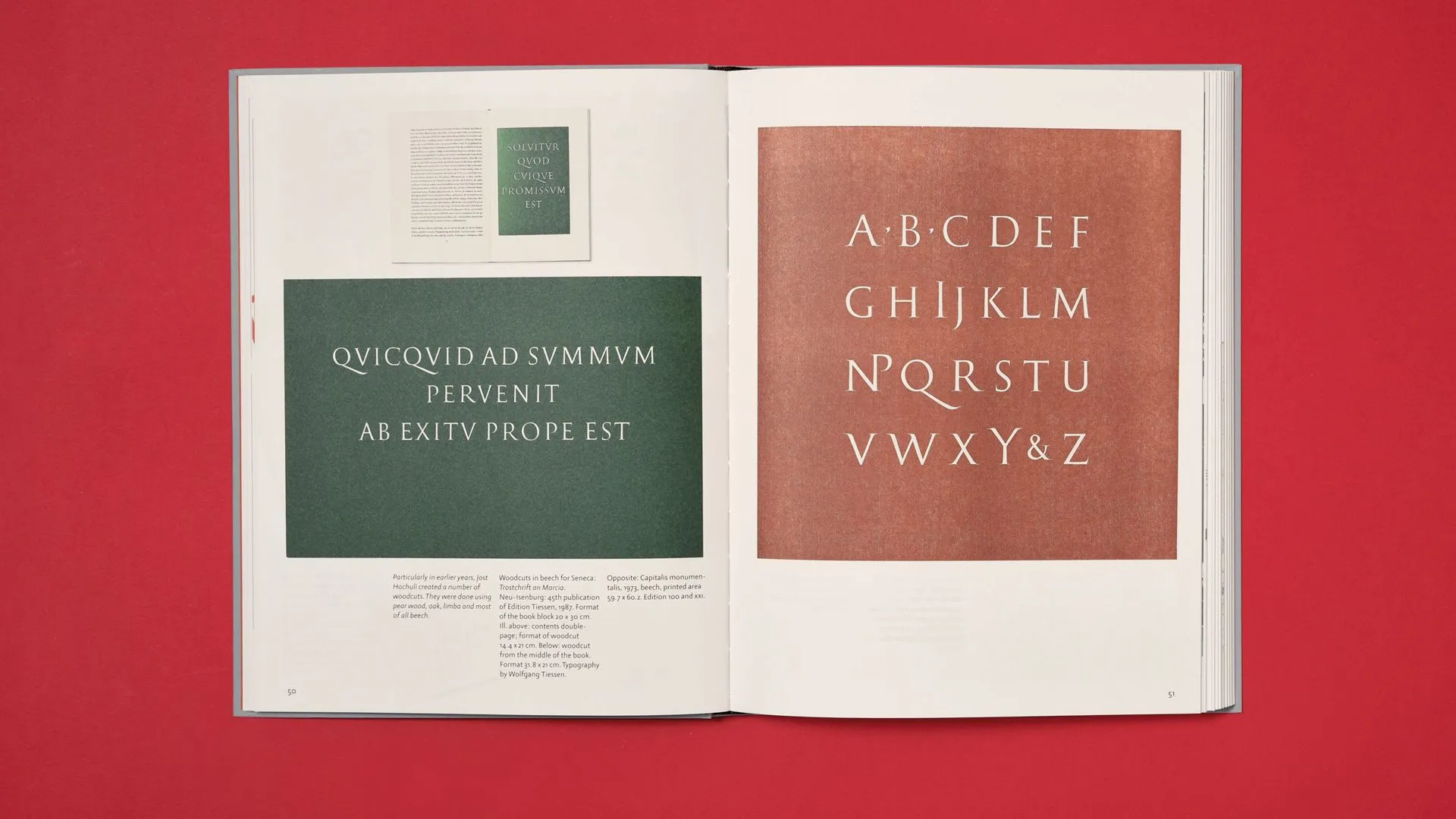 His editorial work is therefore a skilful blend of flexible grids, a fine exploitation of gaps and hierarchization of texts. Neither modernist nor classicist, Hochuli is neither lukewarm nor bland. He's subtle, and it's not easy to date his work, so much so that his balance rests on details that are out of fashion. As a good classic, he pays attention to paper quality, printing economy and the quality of fabric and bindings. As a good modernist, he rhythms his layouts and modulates his limited effects to sublimate the content.