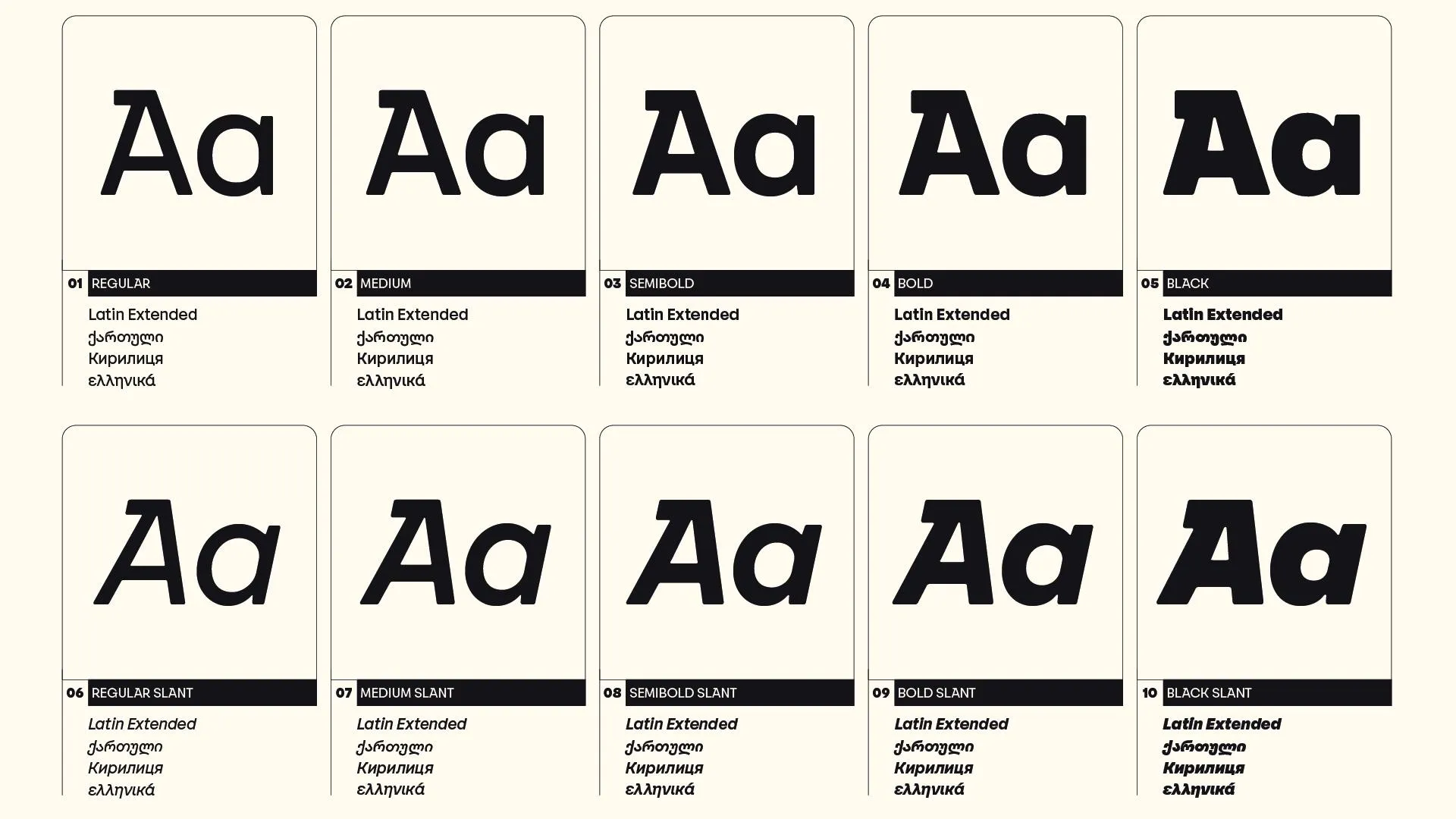 Beyond weights, script coverage was consolidated: extended Latin, Cyrillic, Greek, and Georgian — a significant milestone, and likely a first for Blaze Type at this scale.