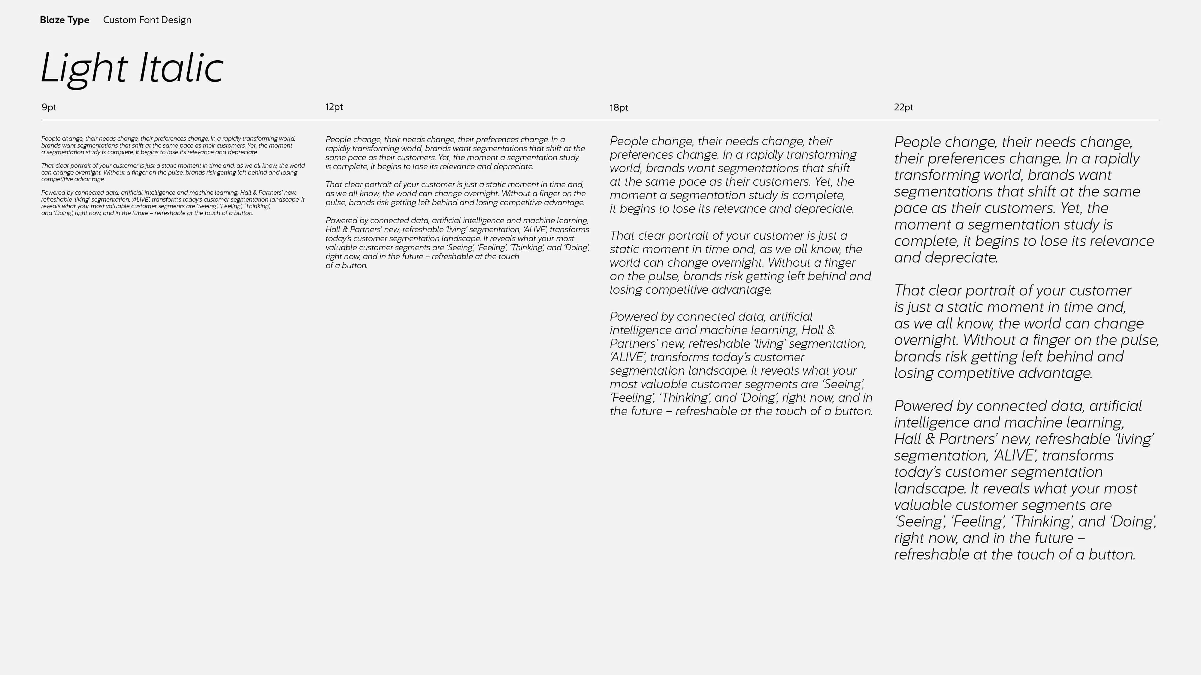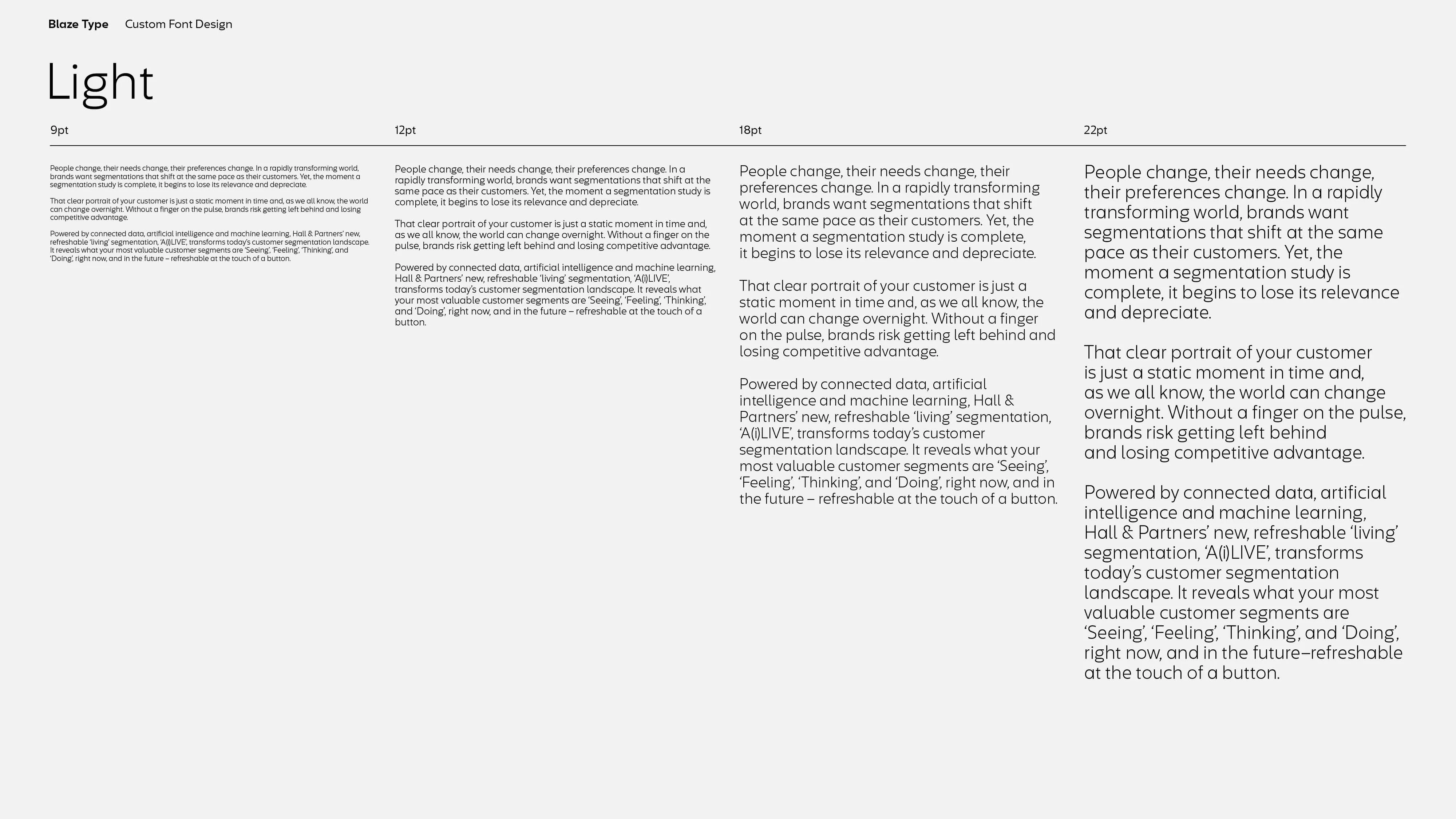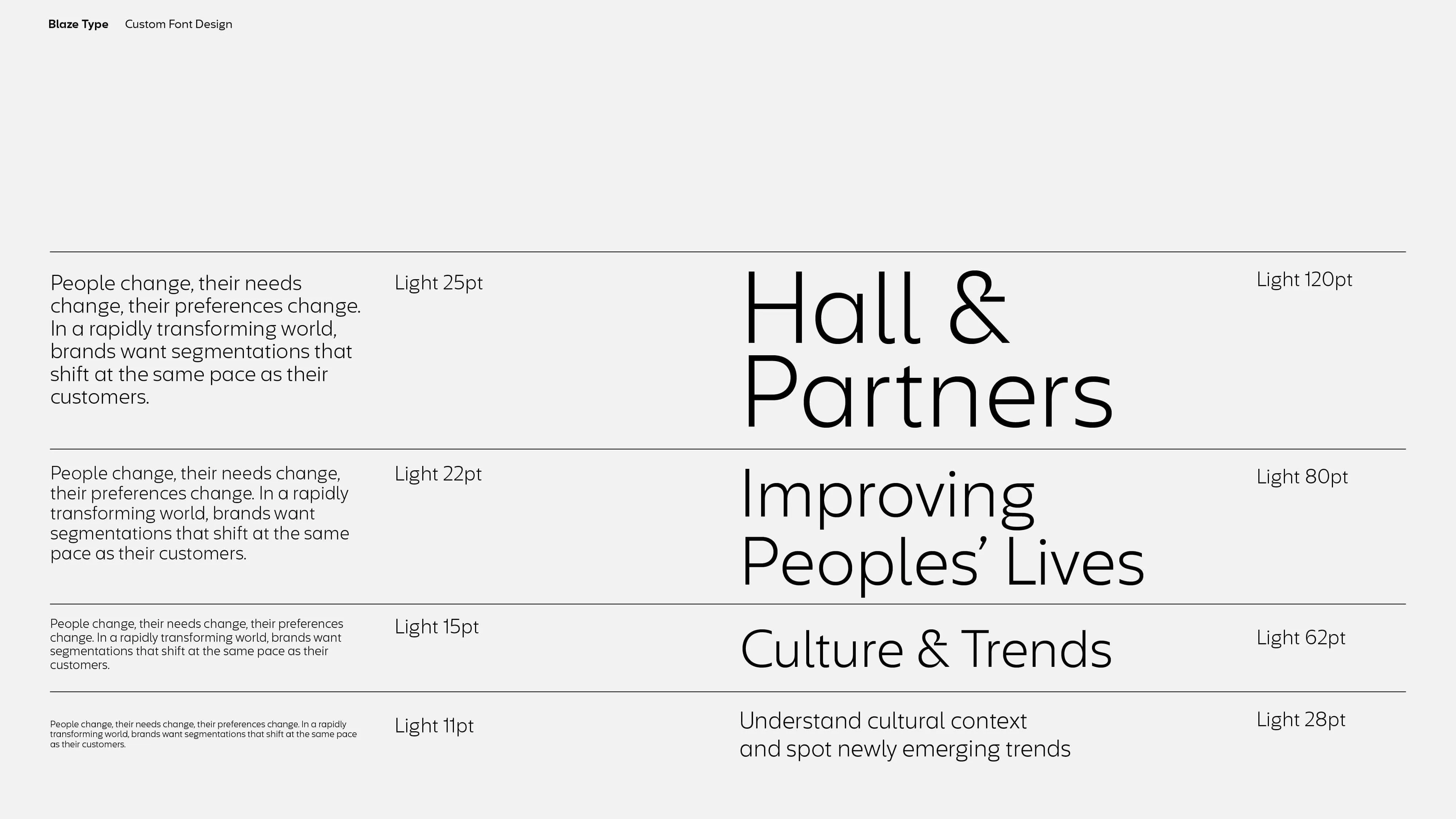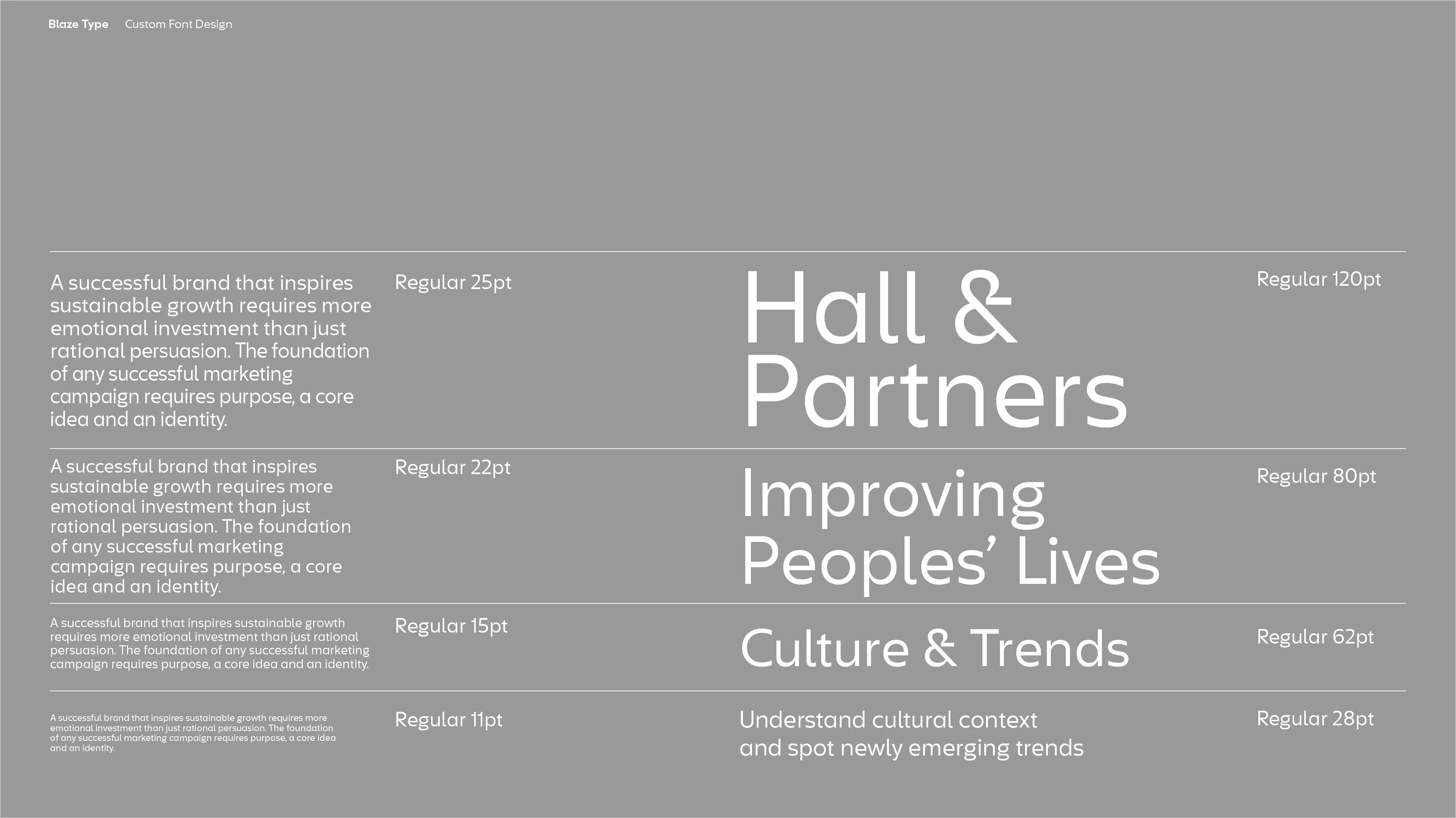 We were approached by Hall & Partners late 2021 to collaborate with them in the design of a full font family system to go along their new branding guidelines.