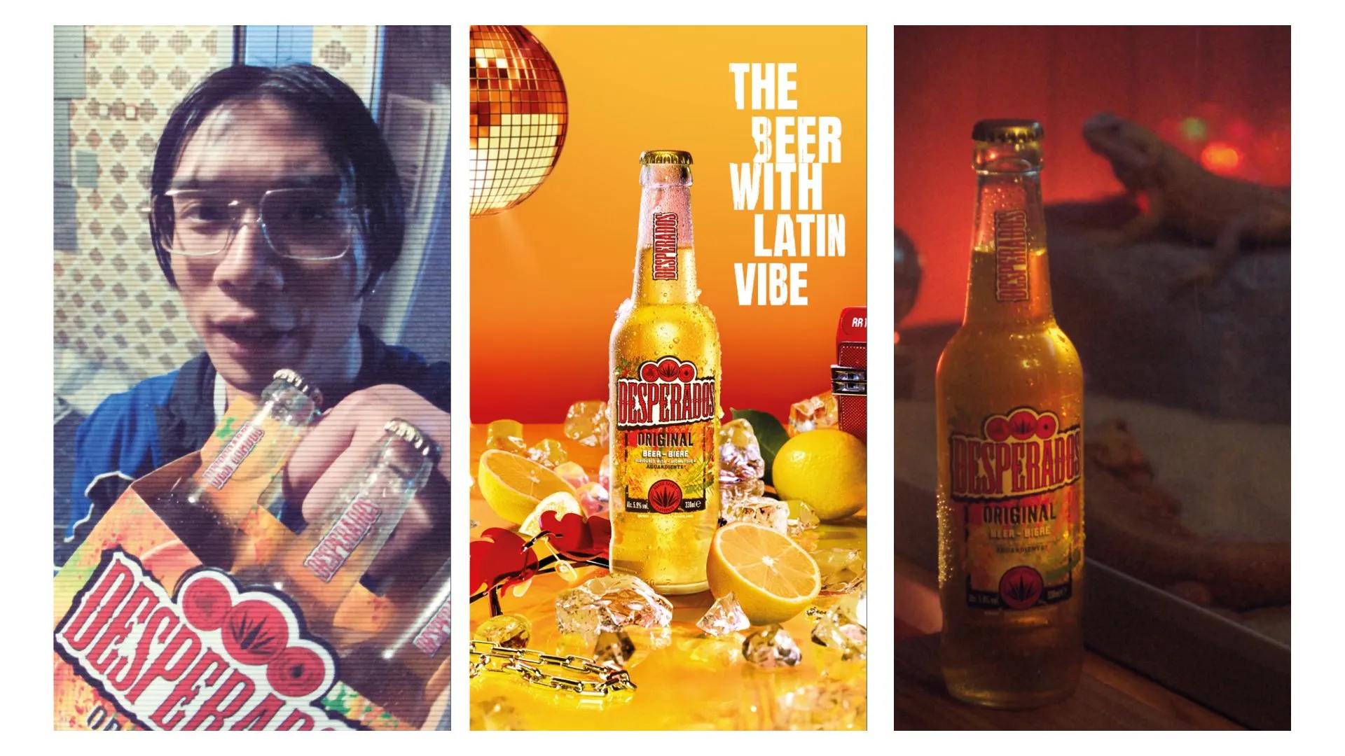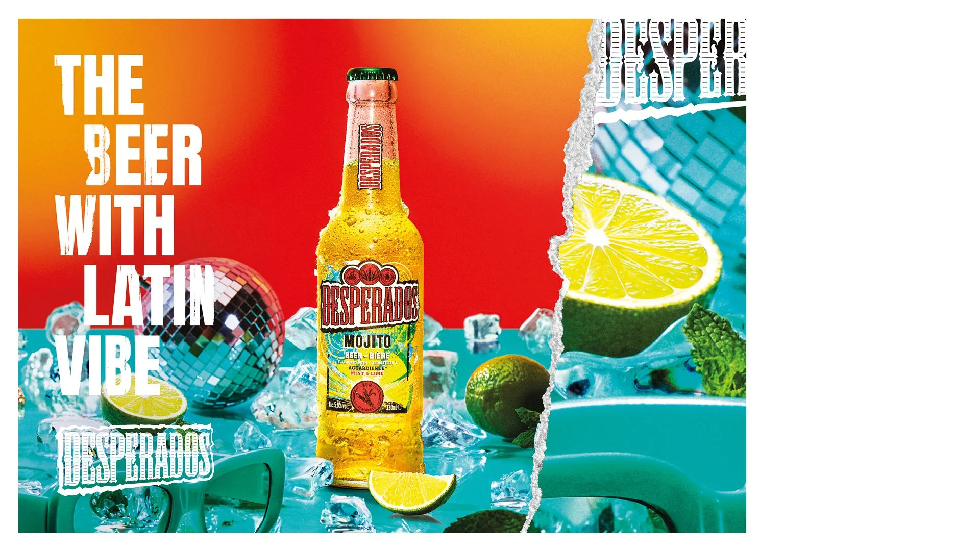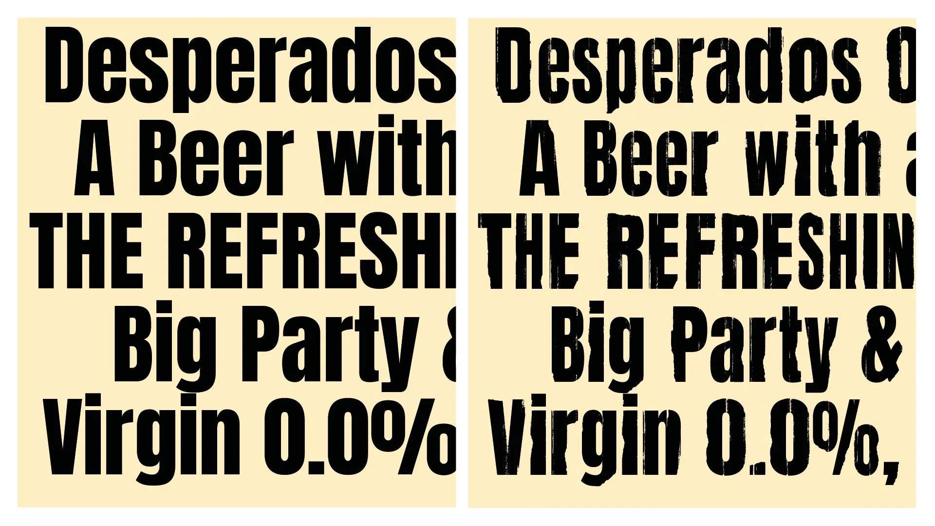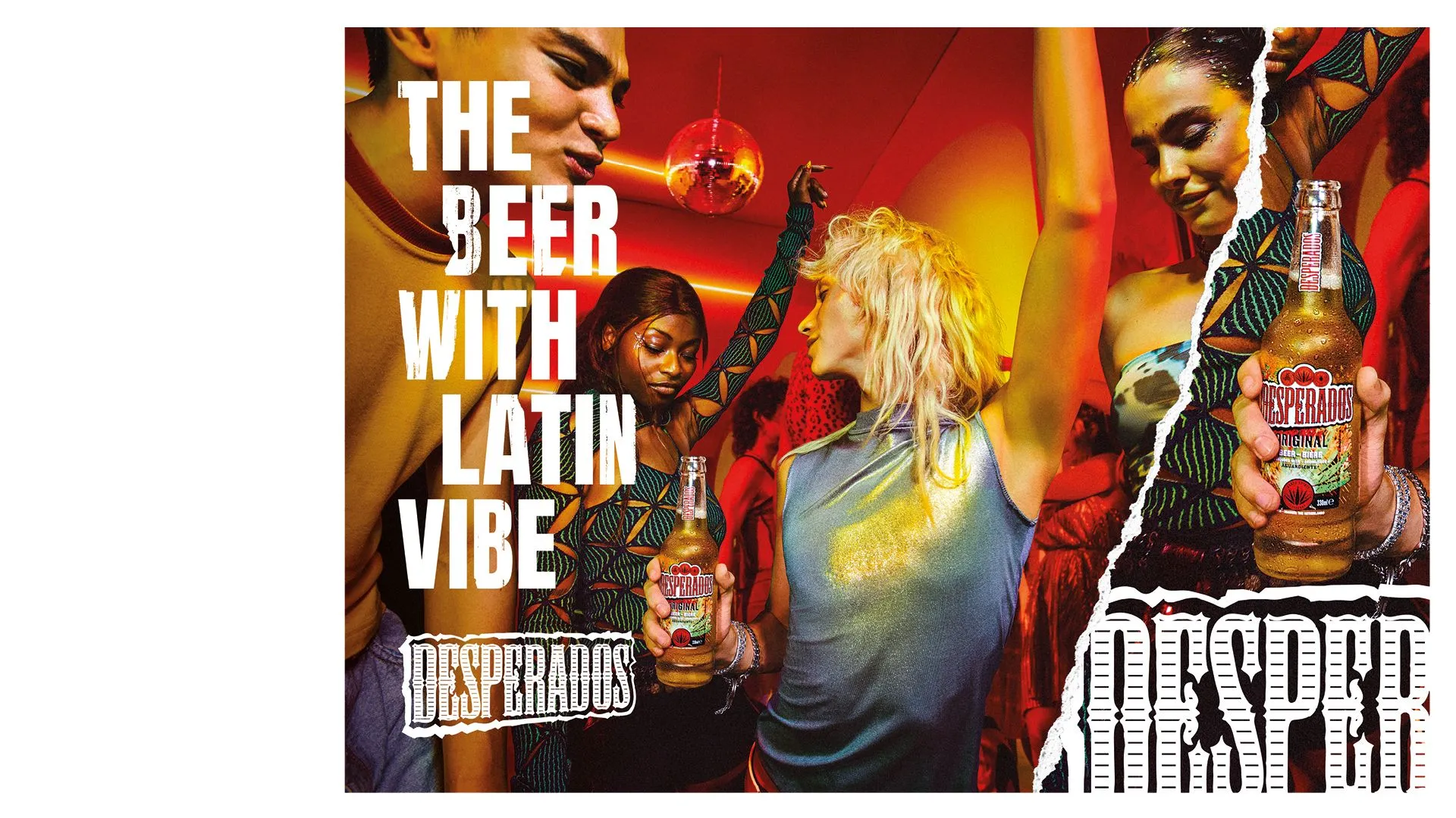 Desperados' communications agency opted for a single typography as the most relevant and obvious solution: adapted to the various writing systems of extended Latin, and evoking both the modernity of the drink, and the tradition of a Latin beer born in the street, consumed in the street.