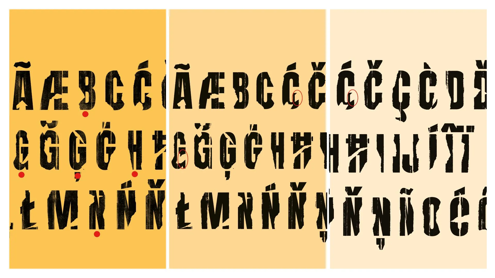 It should be noted that the diacritical characters are not assembled automatically, but, on the contrary, show wear variations, thus increasing the sincerity of the approach.