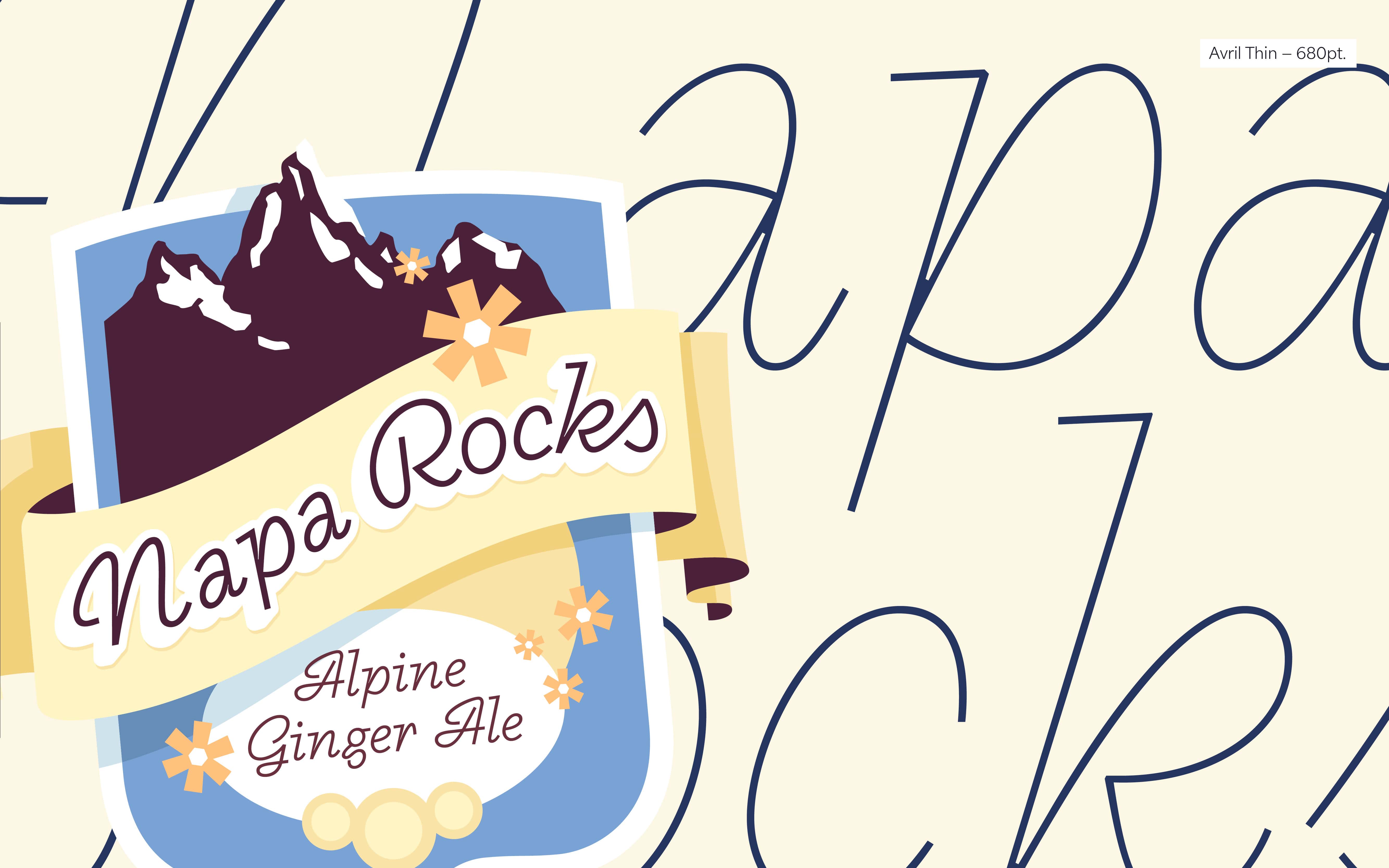 Avril font is a chill but lively script typeface loosely inspired by a french sign painting advertising books from the fifties “La lettre dans la peinture et la publicité” from Jean Joveneaux. The font features expressive semi-connecting characters, stressed moments low contrast that mimic a dynamic handwriting. Its loopy curves that seem traced out an unbroken line make Avril font a chill, playful and distinctive script typeface. Originally developed in one weight, the font has grown into five styles from thin to bold. It was initially thought for display applications, but the chilled lighter styles perform well for longer paragraphs whereas bolder weights will be ideal for headlines. And lastly, the name of this typeface was chosen as a tribute to spring and its refreshing vibes. Avril font is inviting you to a chill Saturday afternoon, ideally during an exciting travel. Welcome aboard!