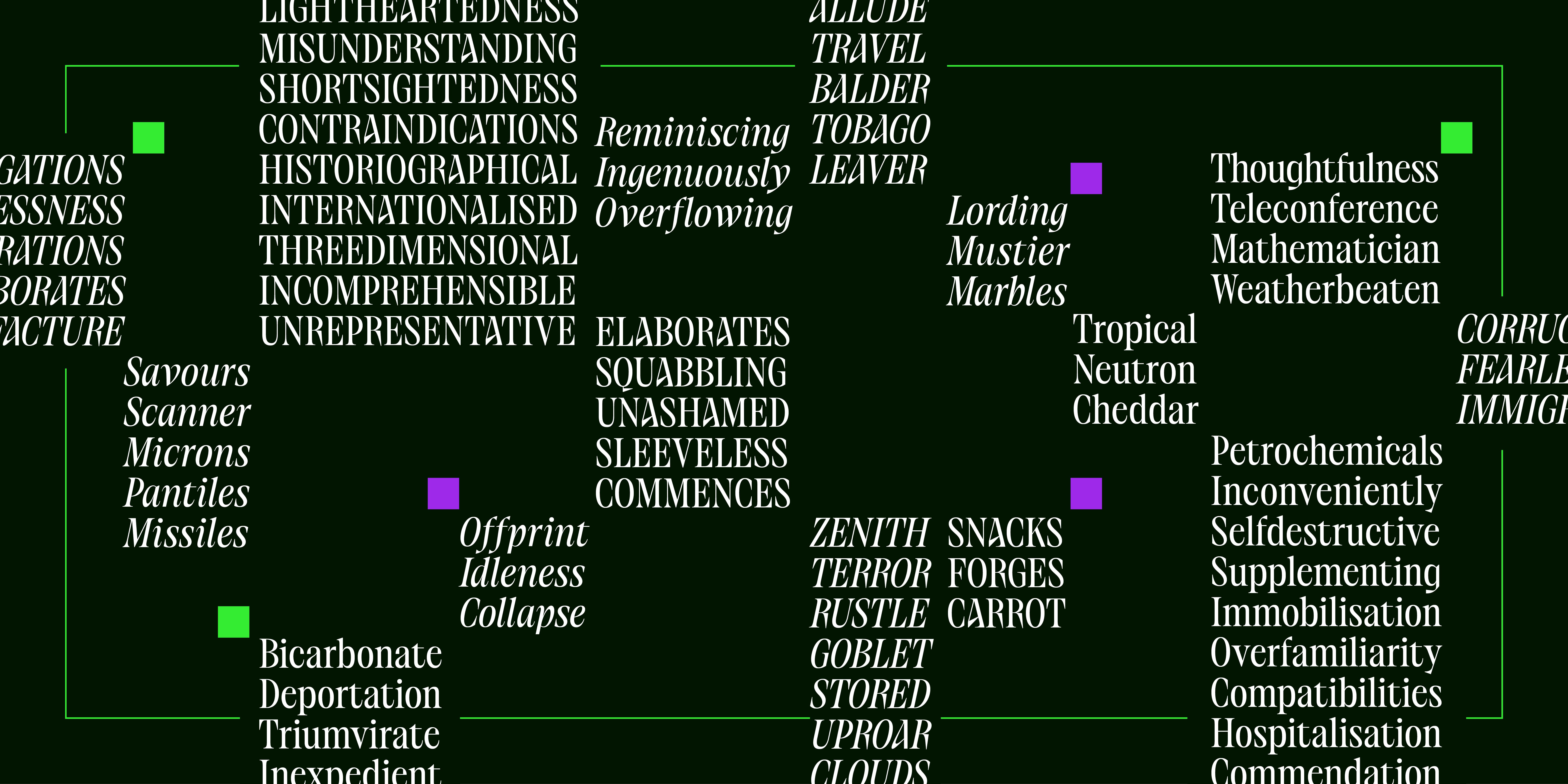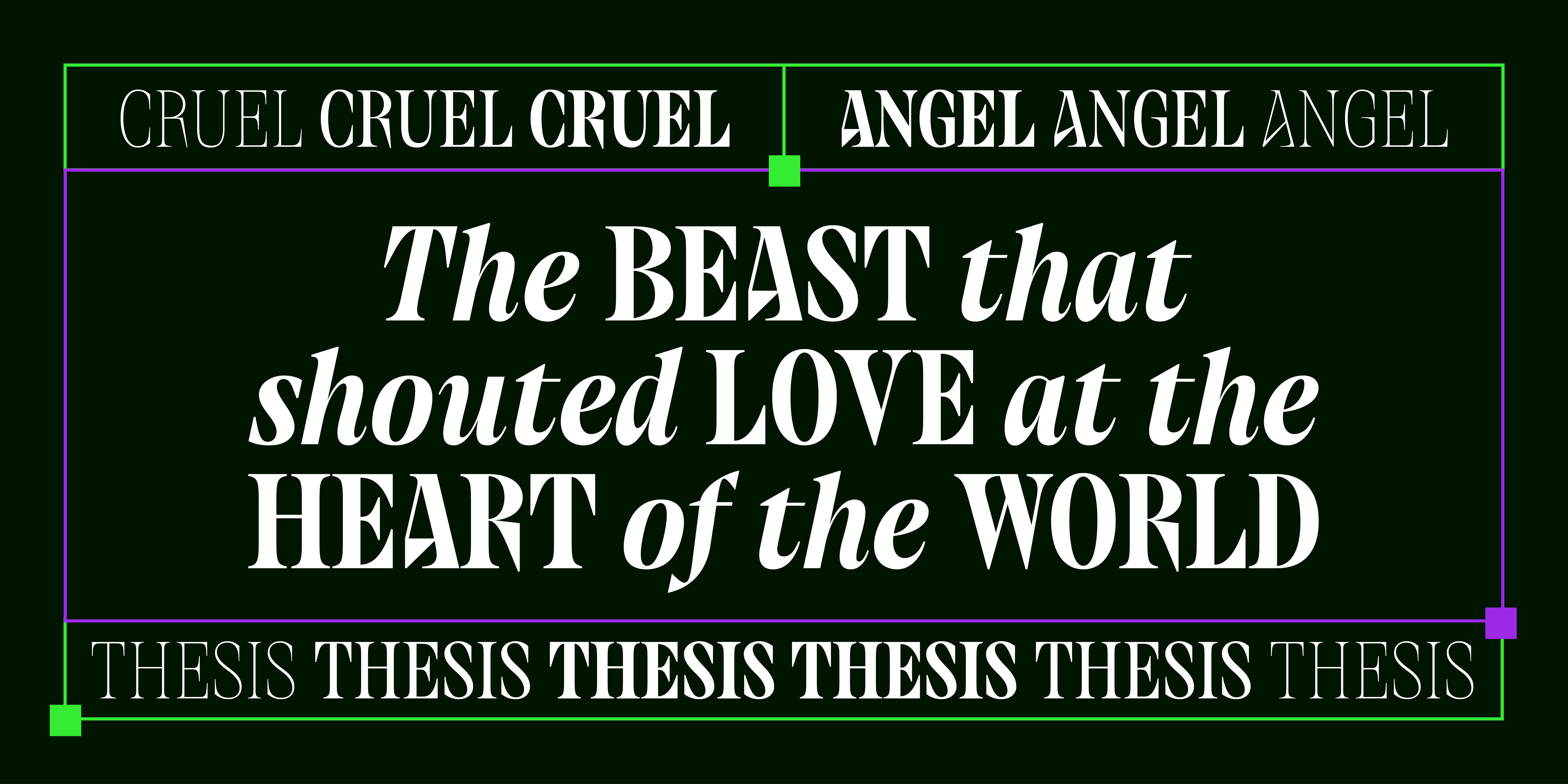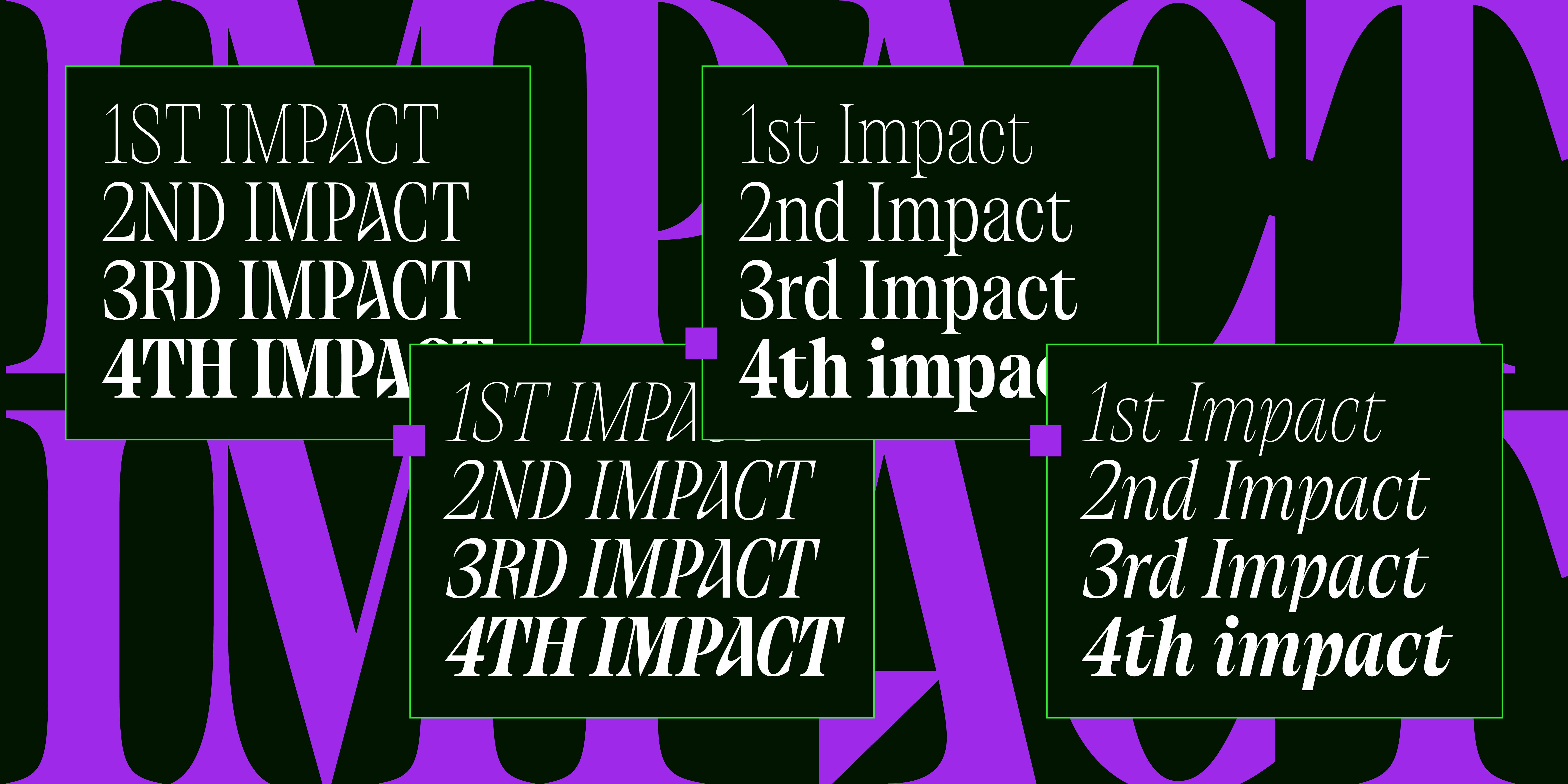 Collapse is an austere and melancholic condensed serif, crafted with an air of stark pessimism. Loosely inspired by the iconic serif typeface seen in the opening titles of Neon Genesis Evangelion, it draws upon the haunting atmosphere of that series while quickly diverging into something more expressive, more severe.