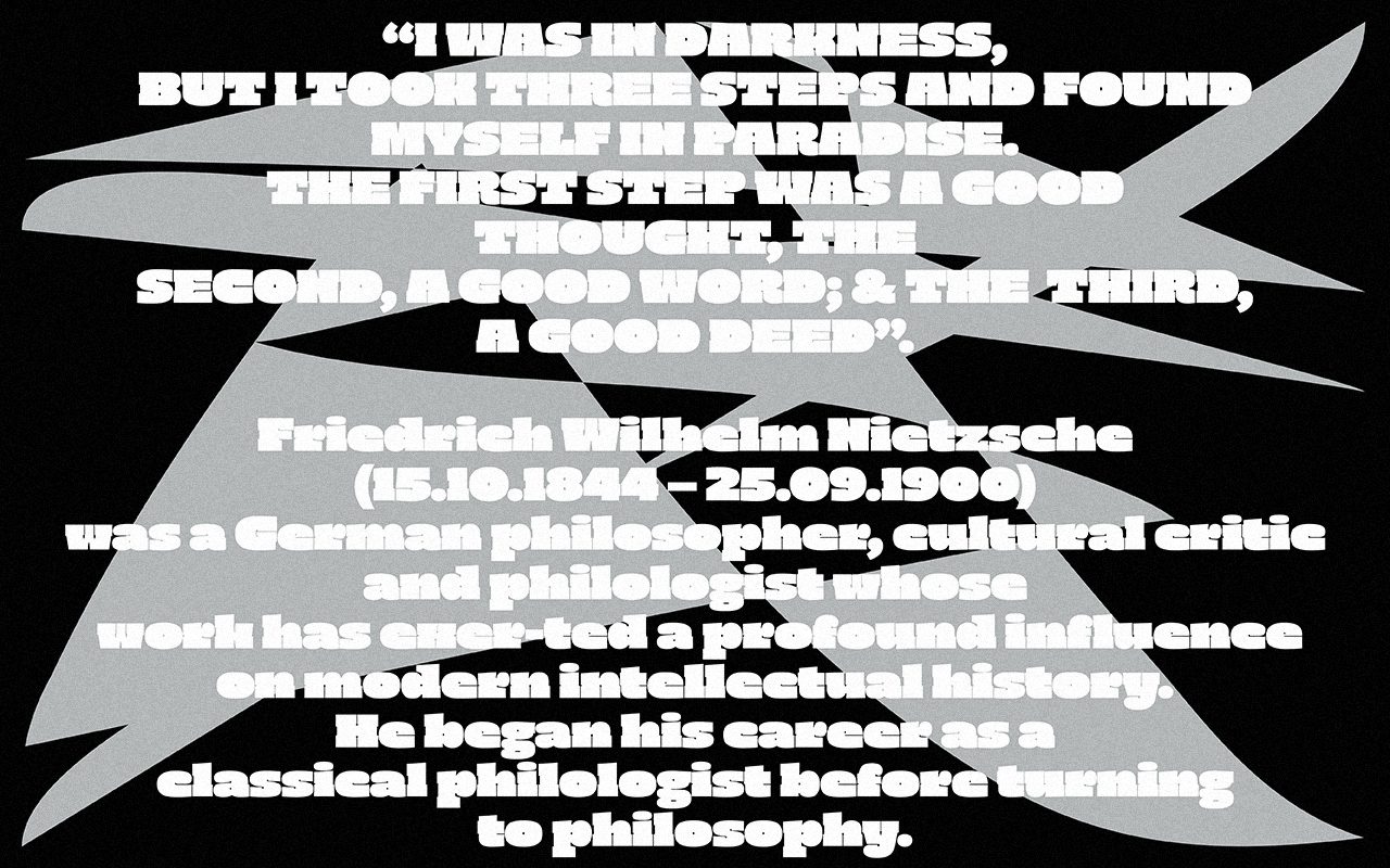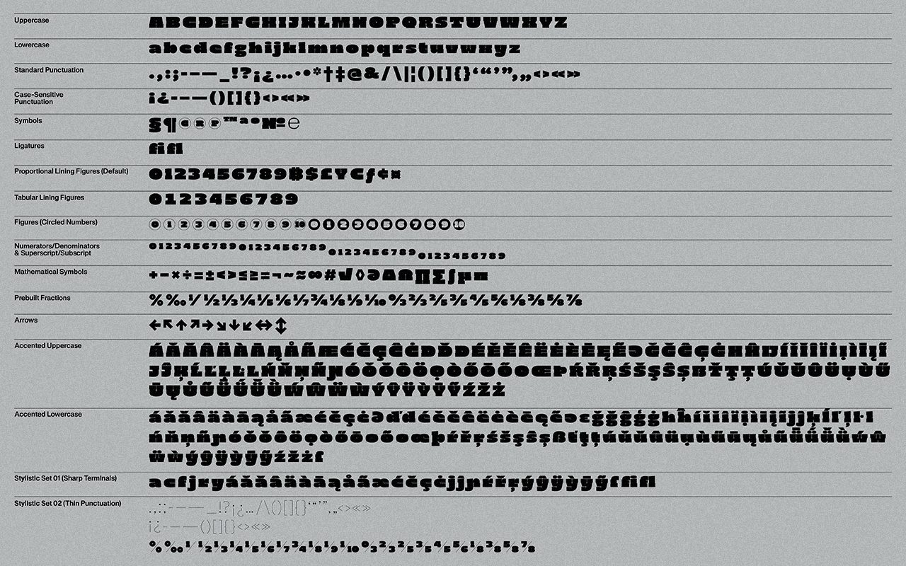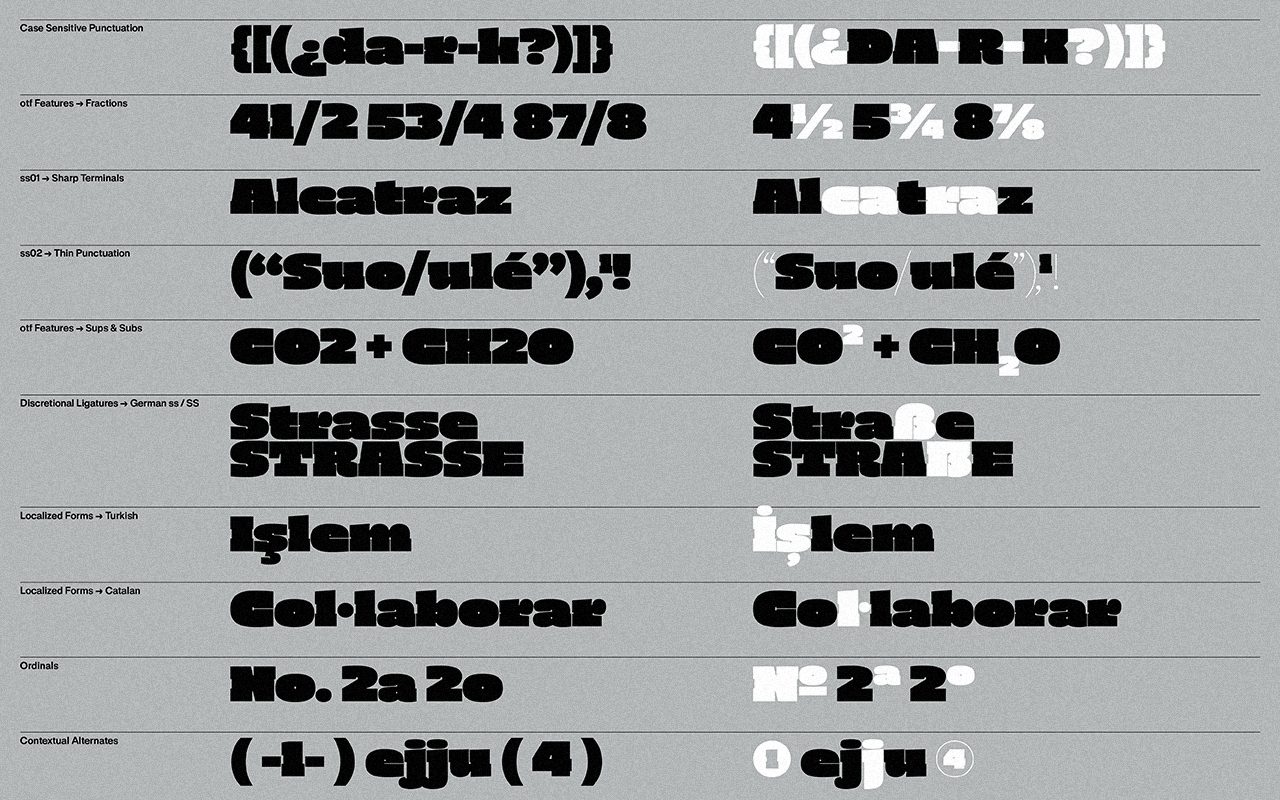 The whole concept of Darker Script is to find a sweet balance between the heaviest glyph possible while retaining enough light in the counter shapes to remain legible. As such, the glyph shapes have been enhanced and drawn with extremely black forms, heavy slabs and subsequently carved with small white &light interventions which make the letters readable in the “darkness”.