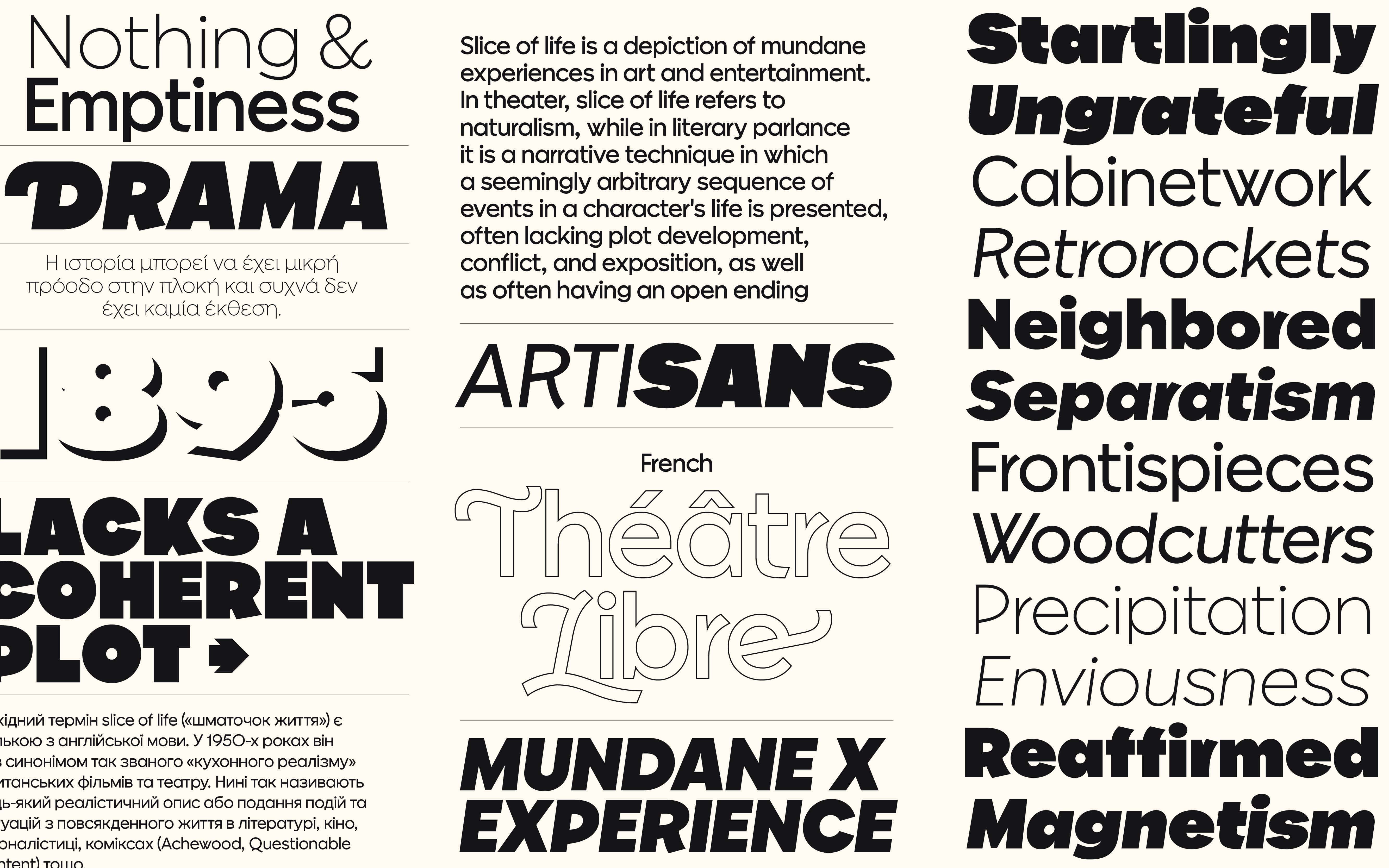 Indecisive includes Latin extended, Greek and Cyrillic across all styles and alternates, Indecisive will have something for everyone. Its Heavier weights embrace Indecisive’s playful nature and allow for strokes to merge. Its lighter weights are more reserved and well equipped to tackle larger paragraphs of text. Indecisive has some stand out characters such as the /r and /w and swooping out-strokes on the /K and /R, allowing it to stand out without being overbearing.