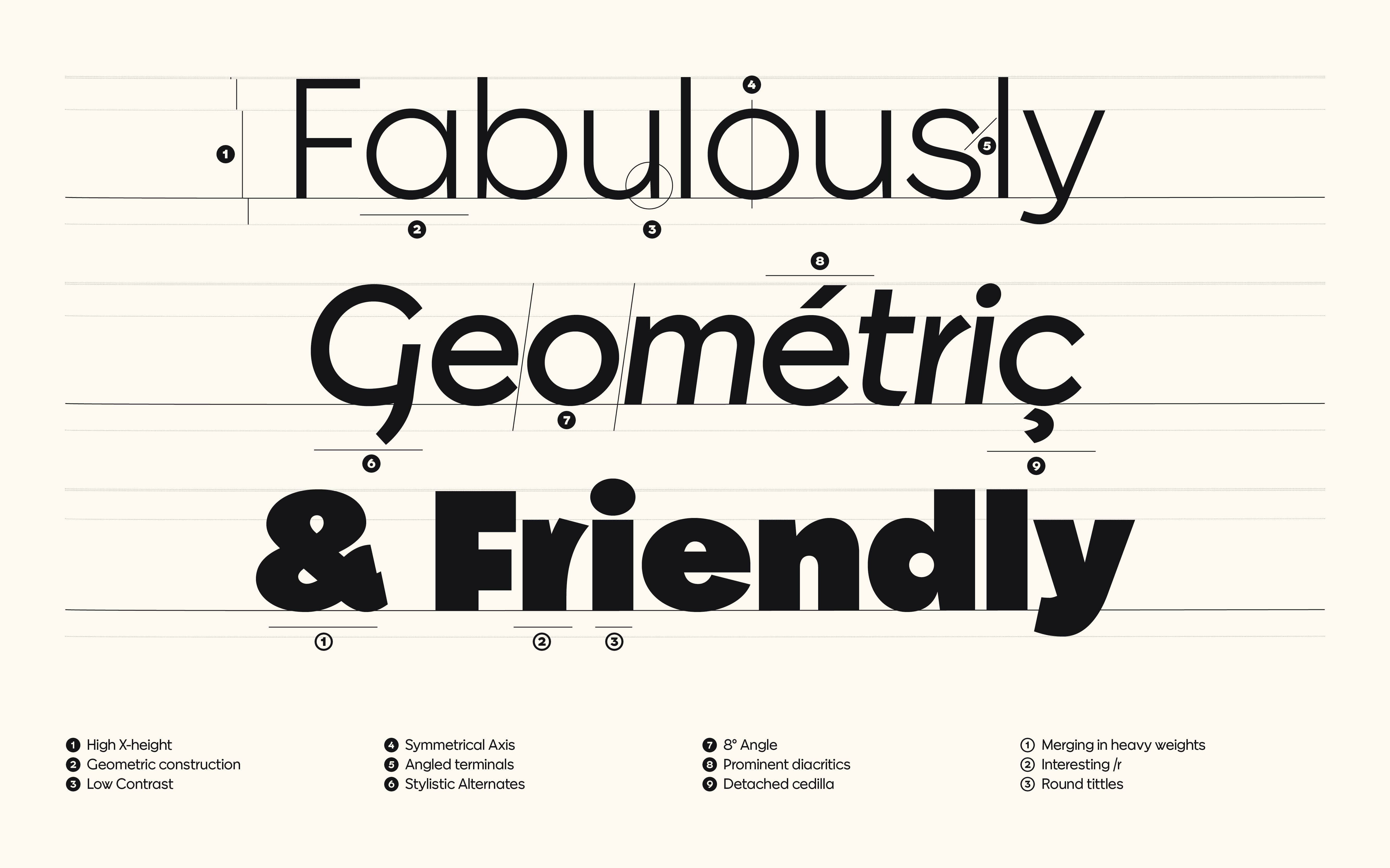 How to create an original Geometric Sans? Indecisive Sans takes on a more playful and approach than most Geometric Sans. Indecisive Sans isn’t based off of one source of inspiration, but merges elements from various Sans Serifs, such as Bernhard Gothic, Nobel Antieke and Spartan. Equally, Indecisive Sans comes with a set of alternate, swash characters derived from Old-Style italic Serifs from punchcutters like Granjon. This merger has resulted in a joyful and distinct Geometric Sans perfect for any setting. It comes in 20 styles, from Thin to Heavy, with slanted counterparts providing the user with plenty of versatility for any design.