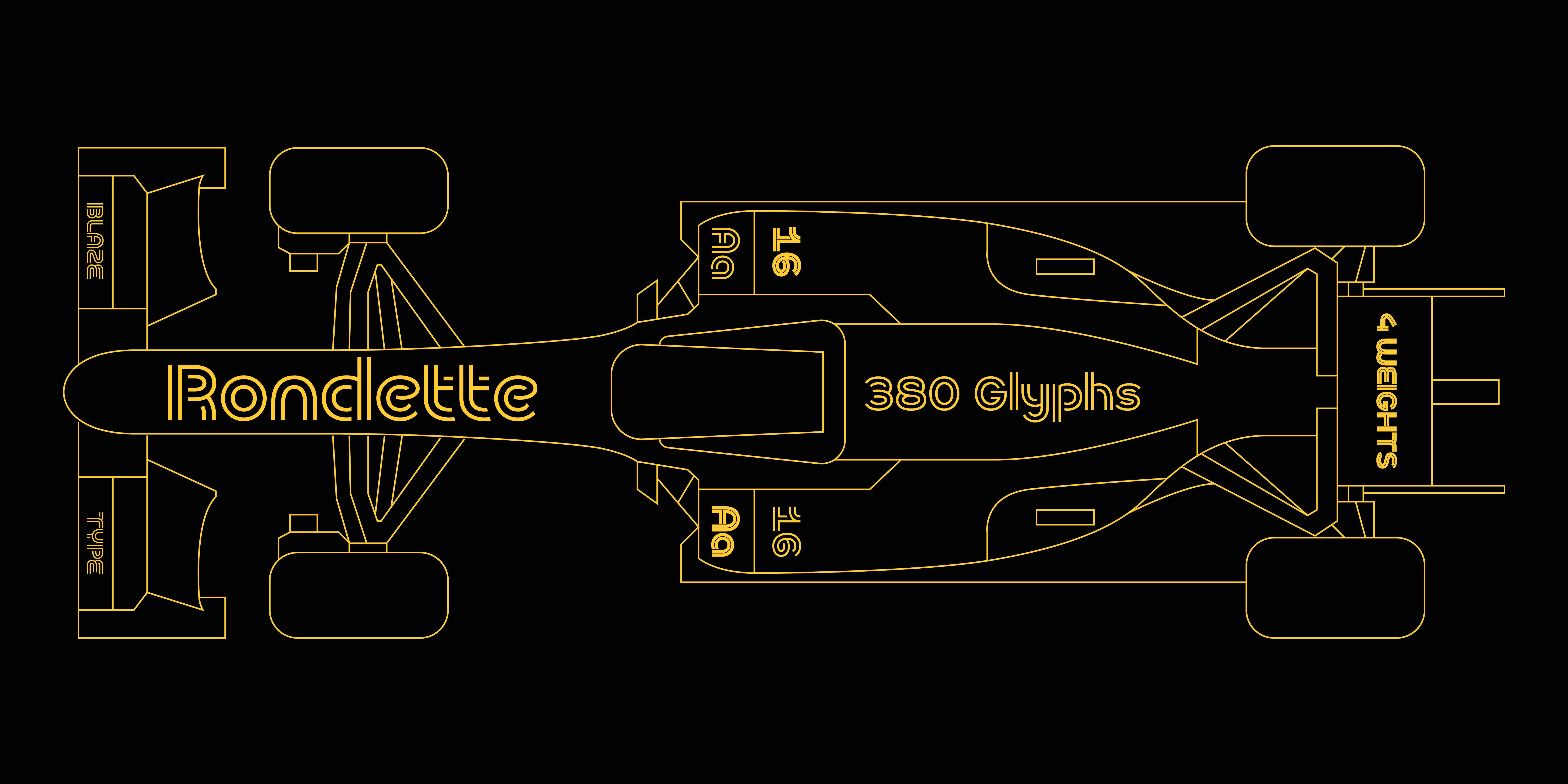 Rondette's design is steeped in historical references, bridging the timeless and the modern. Inspired by Joseph Churchward’s iconic Churchward Design 70 (No-End version) and the striking work of Unimark International for Agip in the 1970s, it also pays homage to the bold, geometric style of Herbert Bayer's Universal alphabet and the clean, functional forms of 1930s sans-serifs like Futura and Kabel. From these roots, Rondette extends into the contemporary sports world, capturing the energy and precision of modern athletic aesthetics.