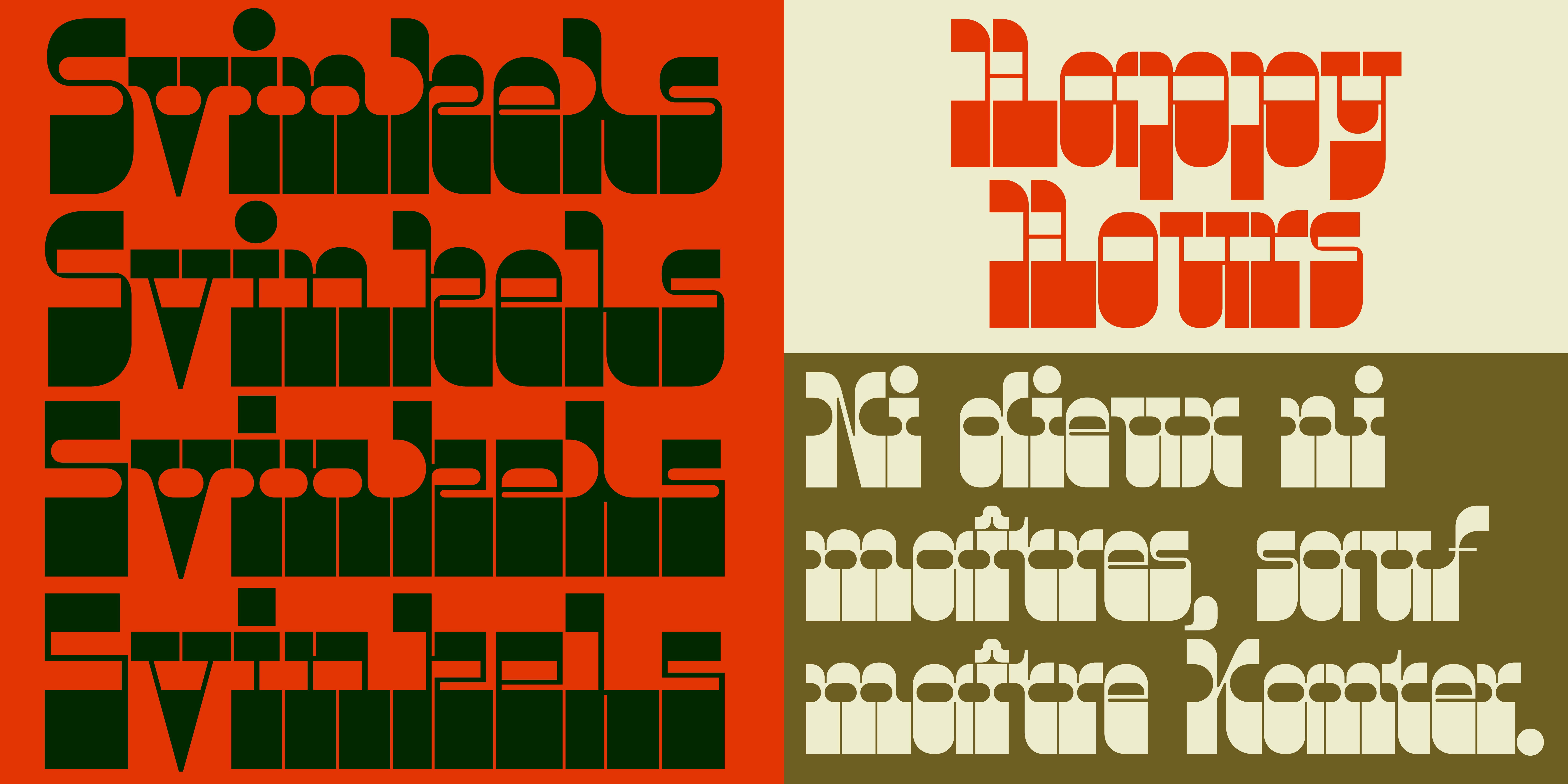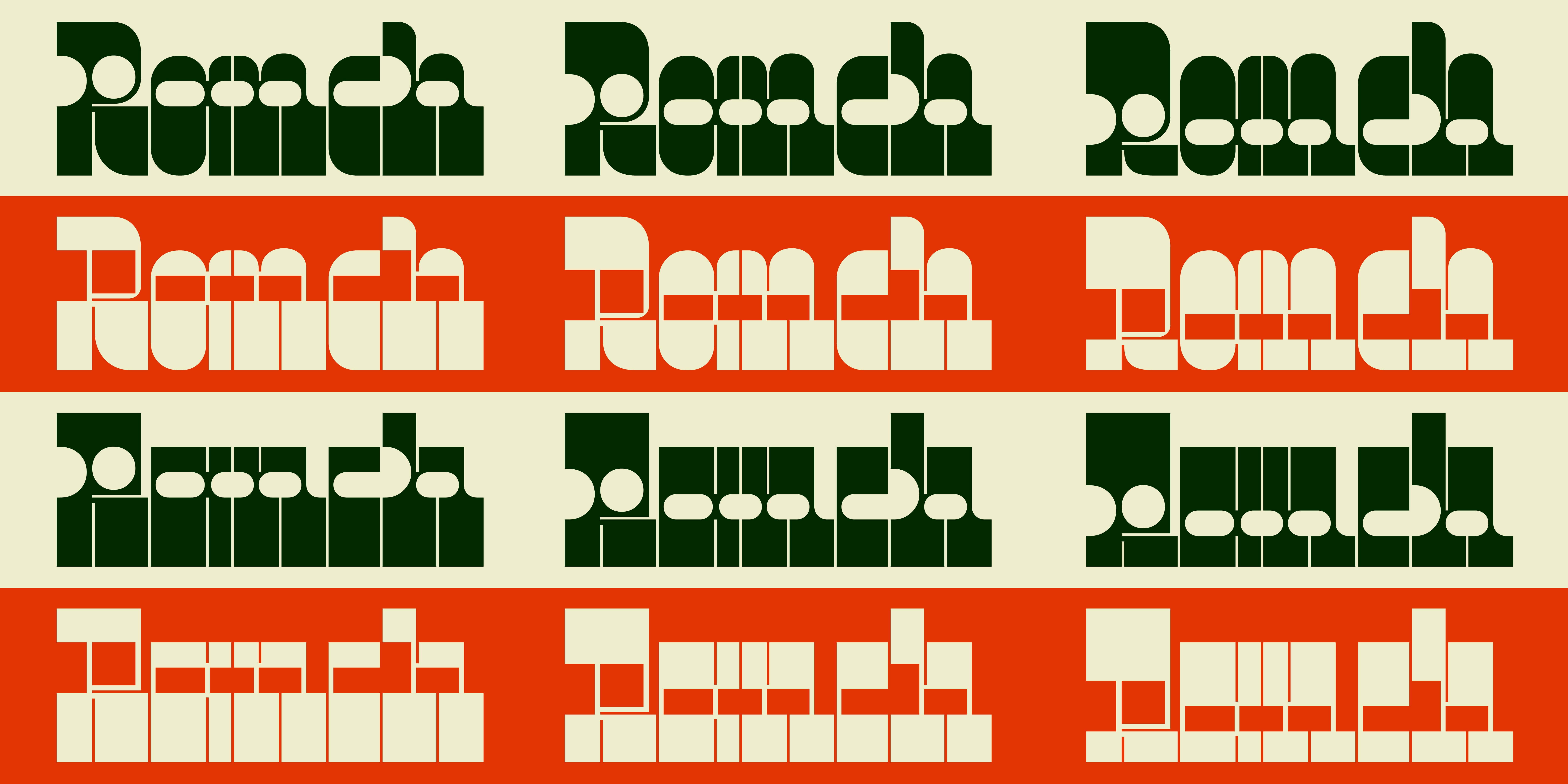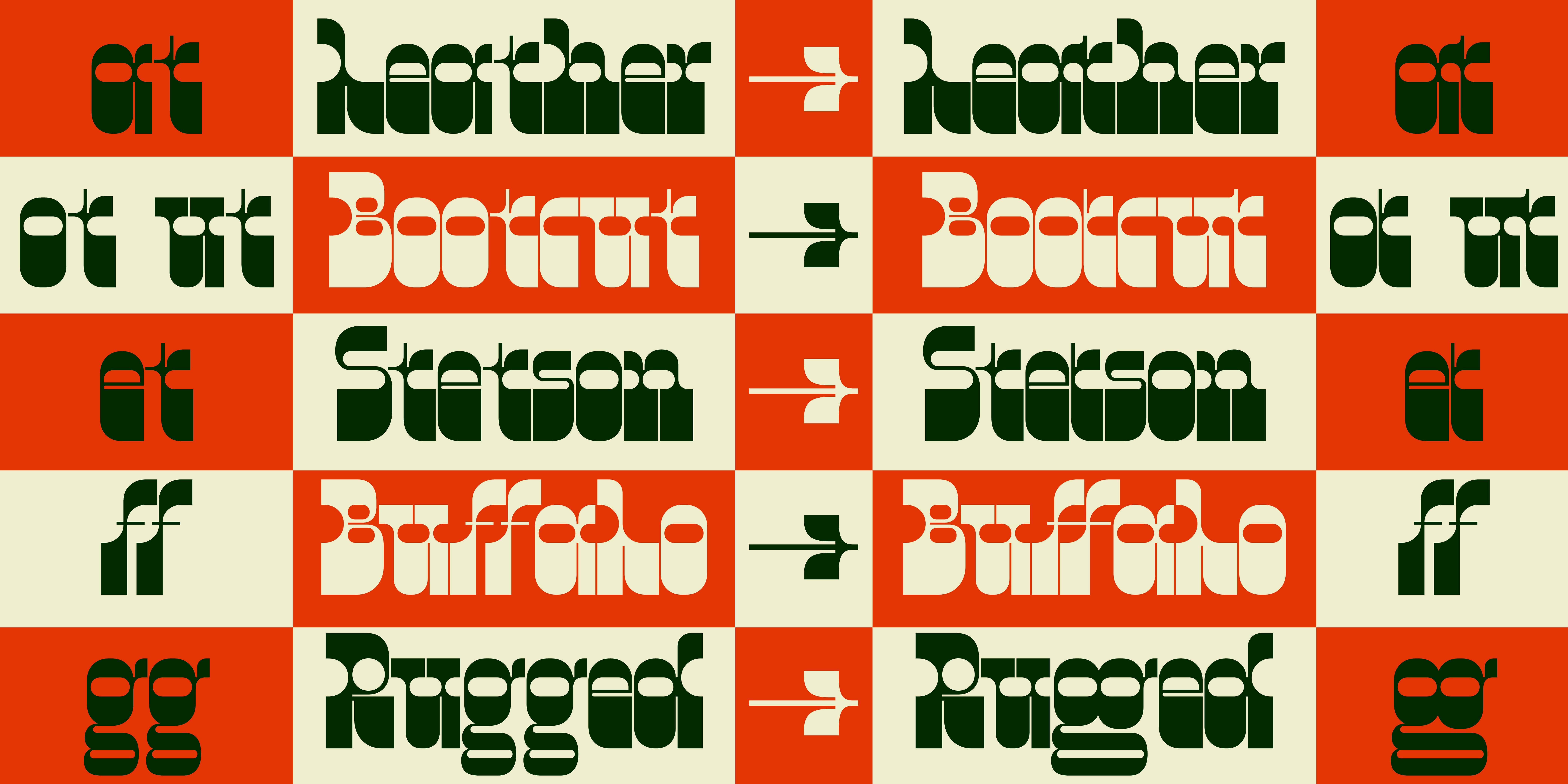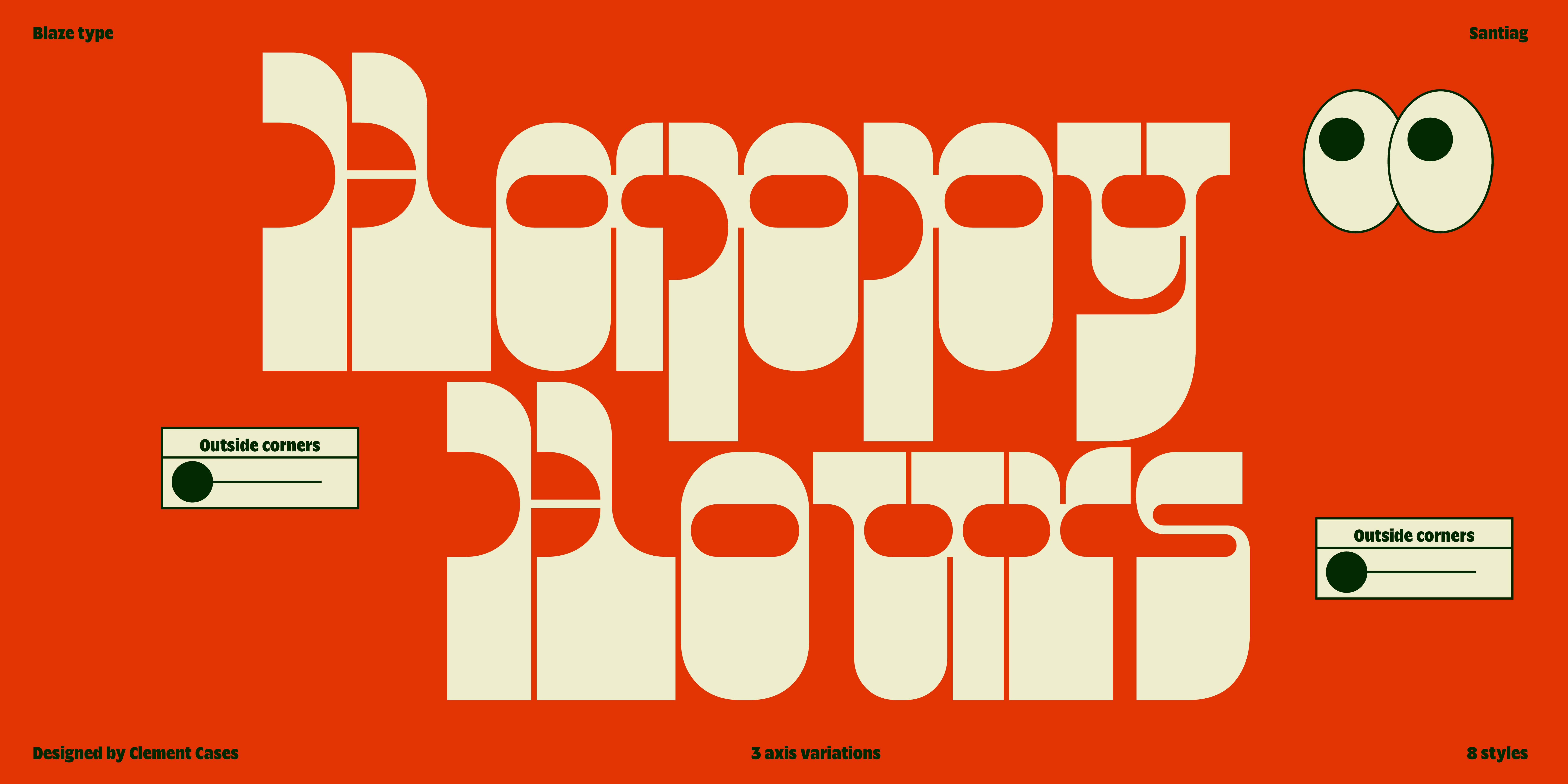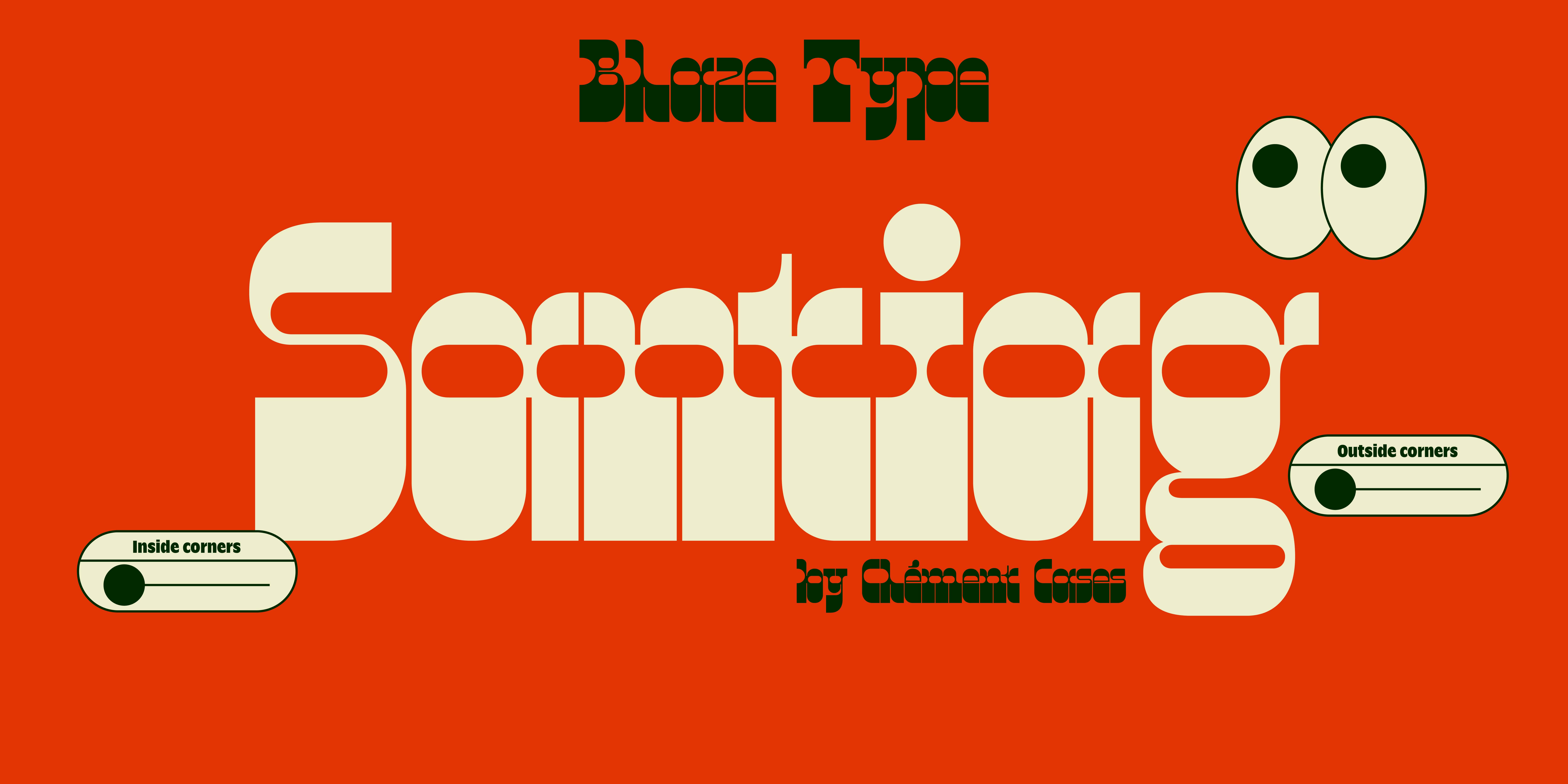 Santiag, designed by Clement Cases, is a contemporary western typeface, inspired by the reversal of stress in the character strokes of the mythic Italian typefaces from the 19th century. This typeface is a modern take on the genre, attempting to incorporate geometric shapes into the counter forms. Featuring bold shapes that relate to serifs, the half-circle is key to creating the rhythm and distinct character of the typeface. The height of the base is adjustable, giving the overall typography a cartoonish feel.