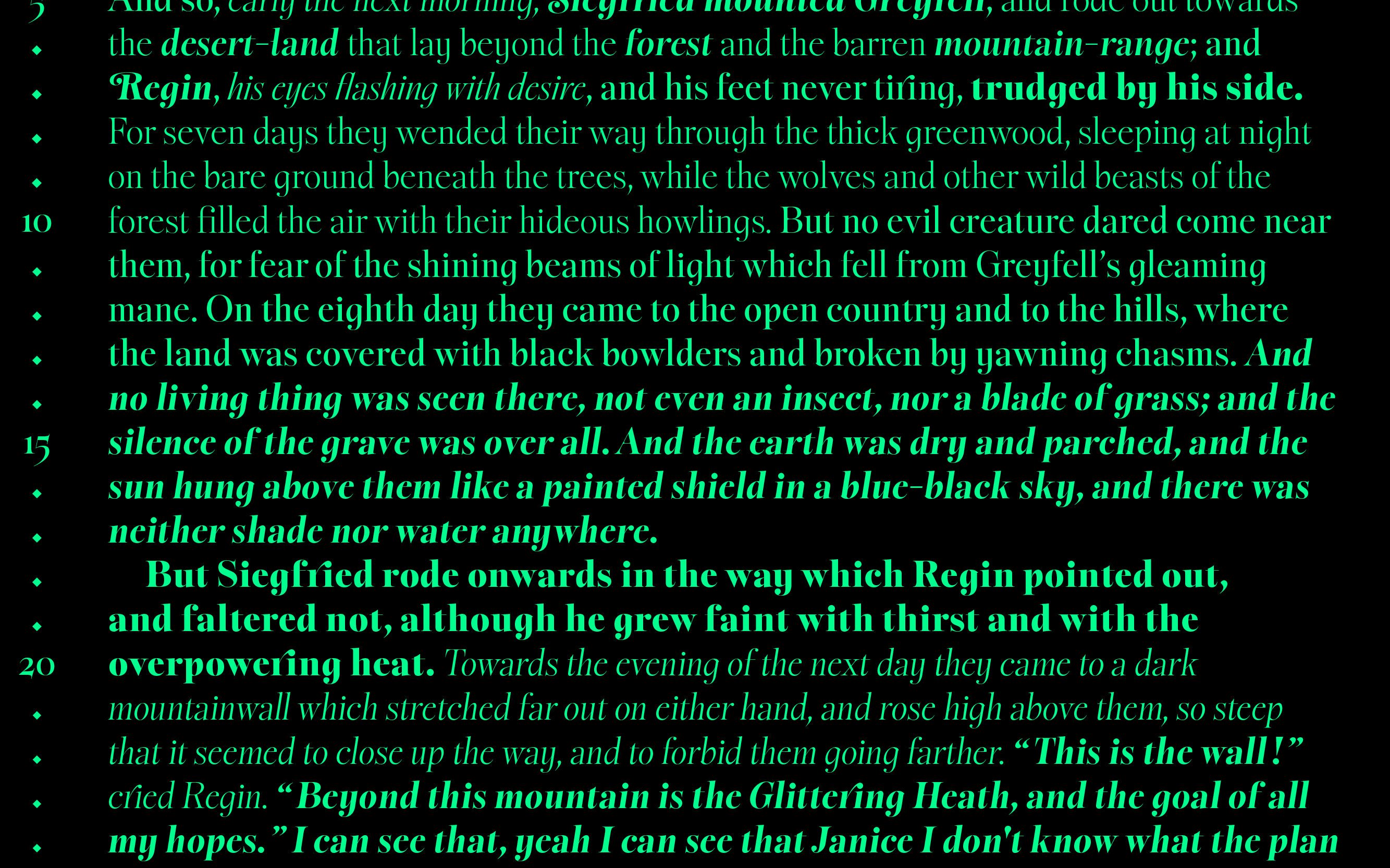 Sigurd is a font family inspired by the Norse hero of the Nibelungen Saga, Siegfried, from medieval literature. Sigurd is a font family gathering its inspiration from Norse mythology in the shape of swords, feudal armours and medieval lettering work. It's an elegant typeface family with a strong design construction and tons of alternate characters and various swashes. Allowing a wide variety of uses in text layouts for display uses.