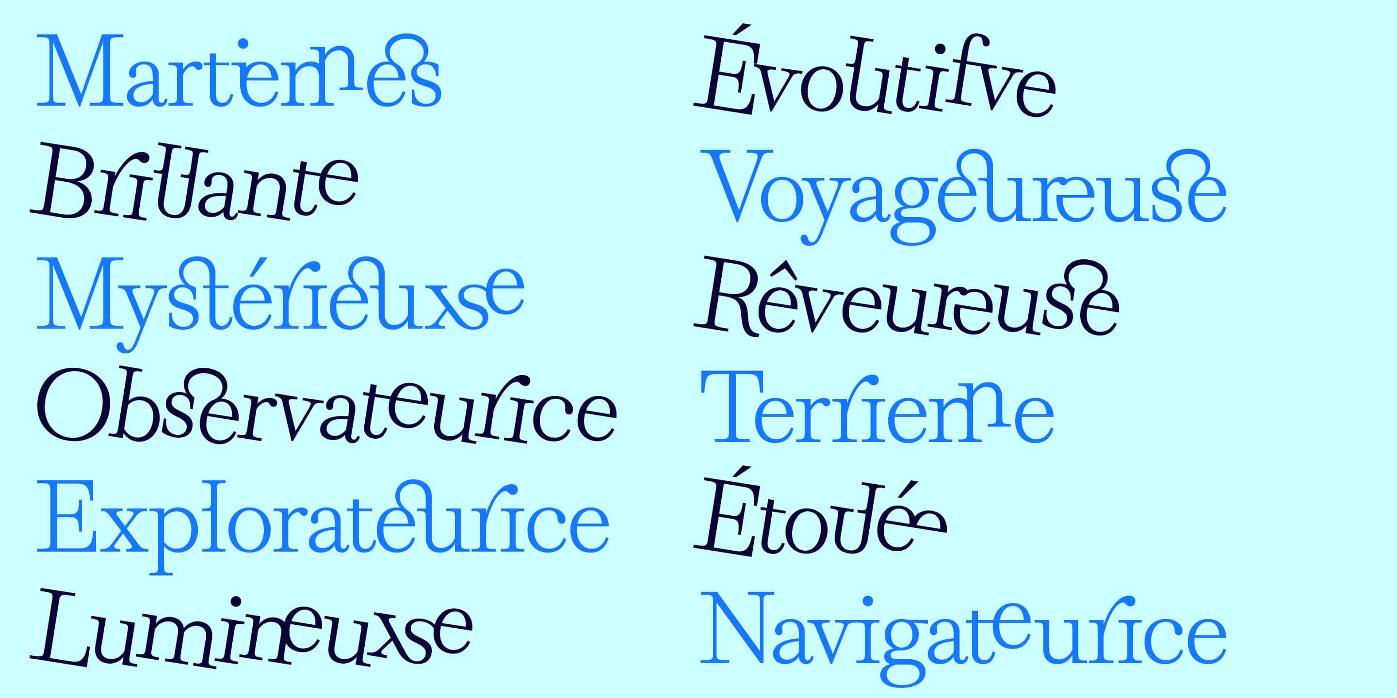 Solæ features thousands of meticulously designed ligatures and alternate forms, making it a versatile tool for editorial layouts, titles, posters, visual identities, and beyond. The Light style is accompanied by a Rotalic version: a 9° rotated design that echoes orbital movement and offers a distinctive alternative to traditional italics.
