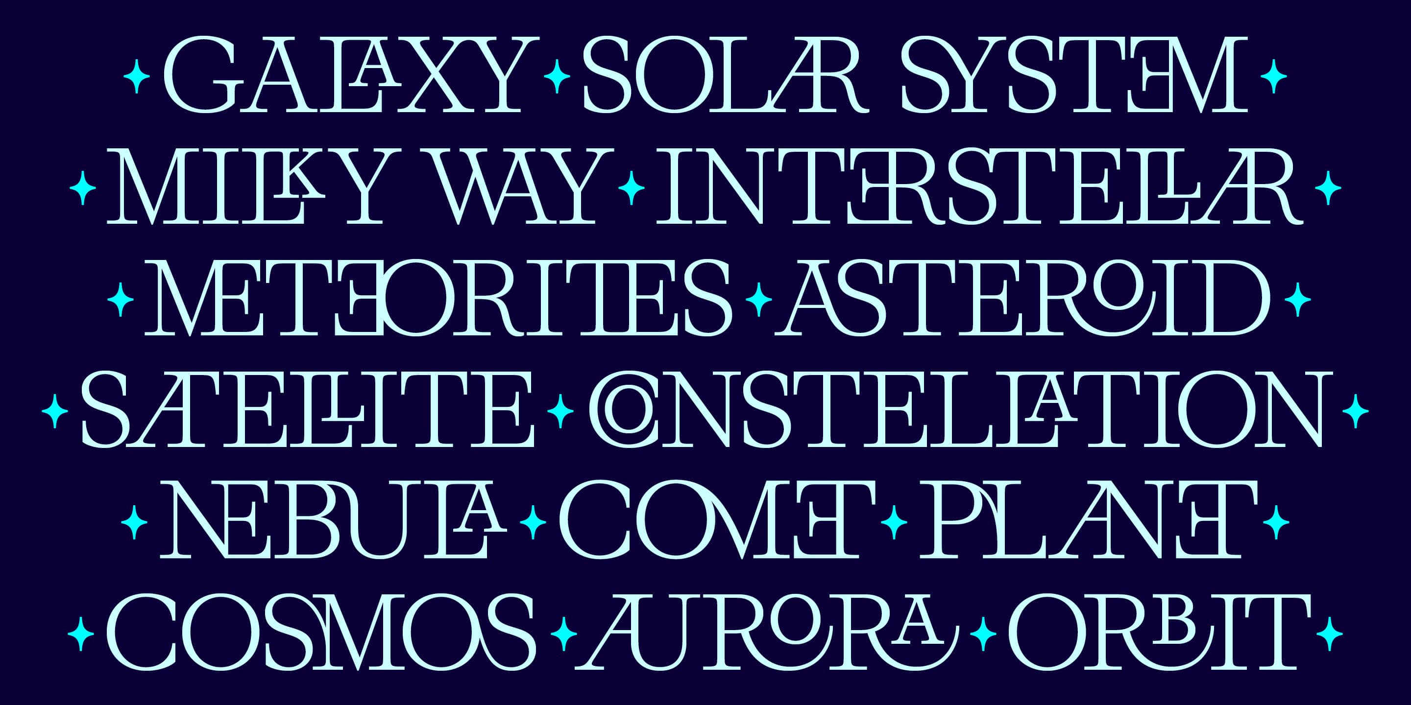 Solæ is a font shaped by the movement of planets, stars, and cosmic trajectories. Designed with delicate lines and subtle contrasts, it draws references from celestial bodies and translates them into a contemporary, carefully built type system.