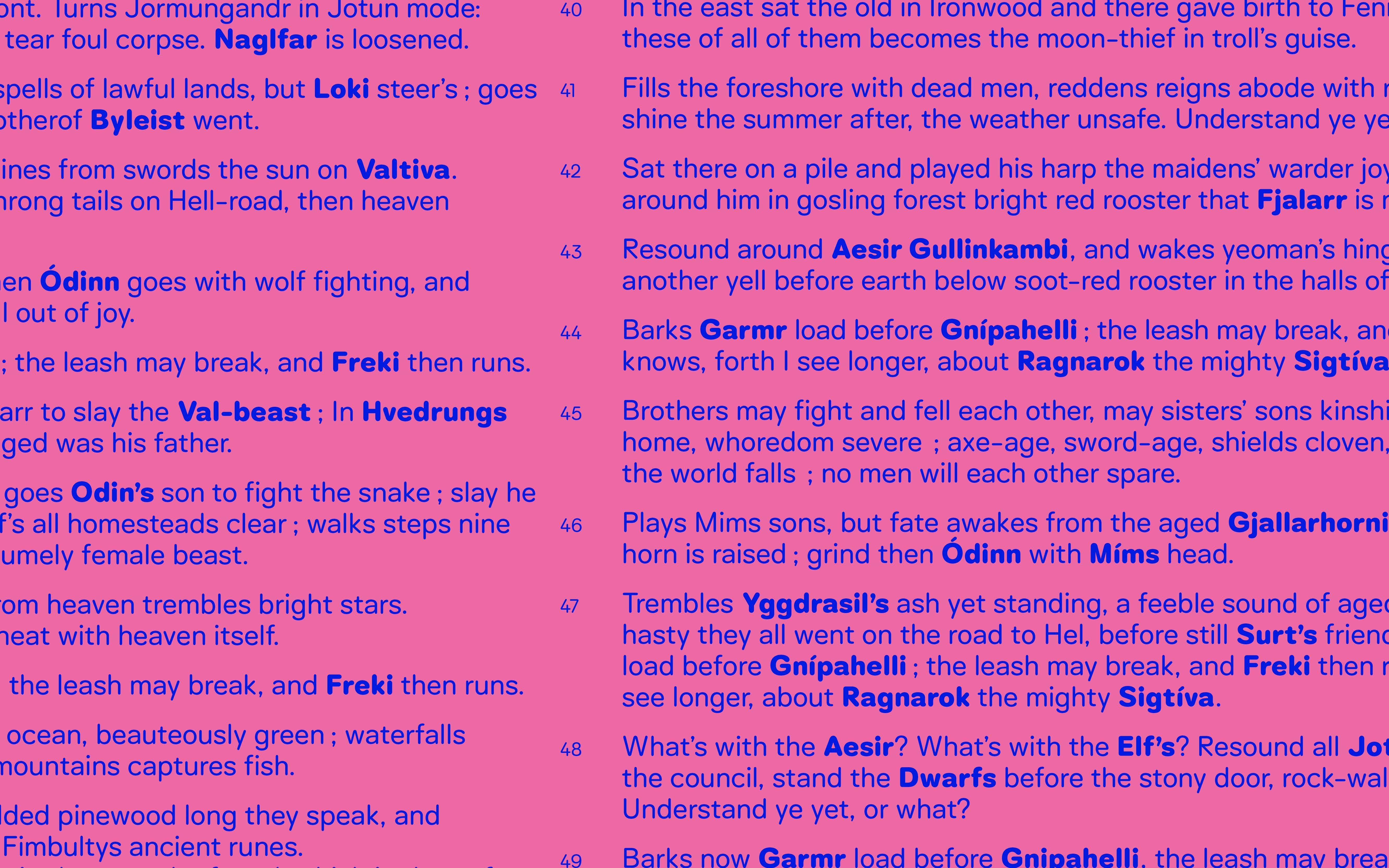 This typeface family, inspired by Norse mythology and Scandinavian Architecture, draws a bridge between a geometric sans and a human process in the whole shape design. Surt Rounded's Norse-like character set will allow text layouts to have this unusual corkiness which make it so particular and so comfortable to read. The rounded Norse inspired glyphs’ width are shaped in such a way that they operate a discrete rupture in the text rhythmic. Surt also draws inspiration in geometrical shapes found in geometric fonts.