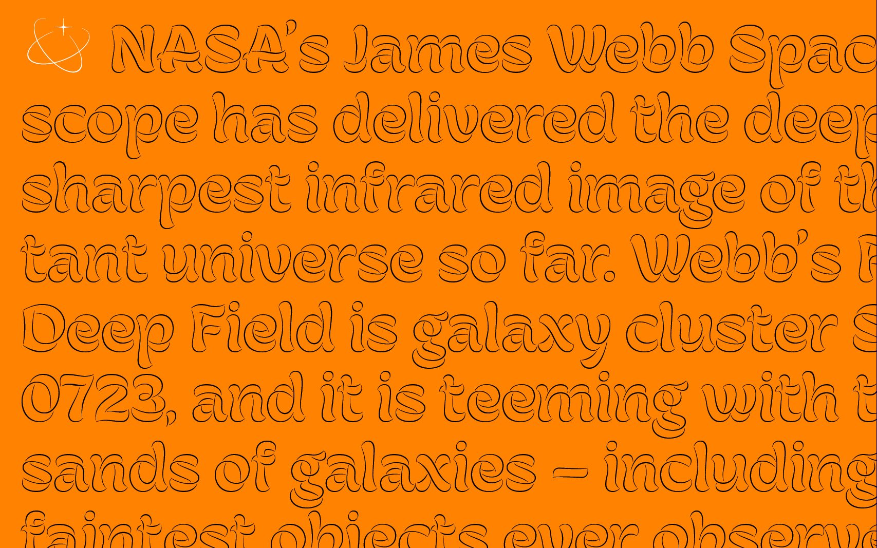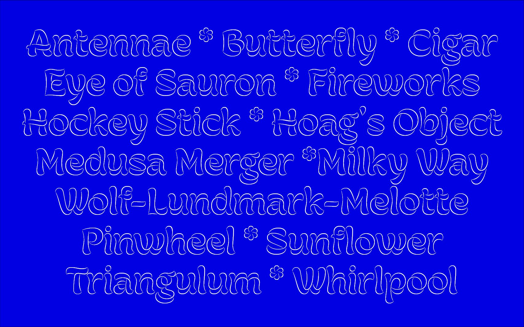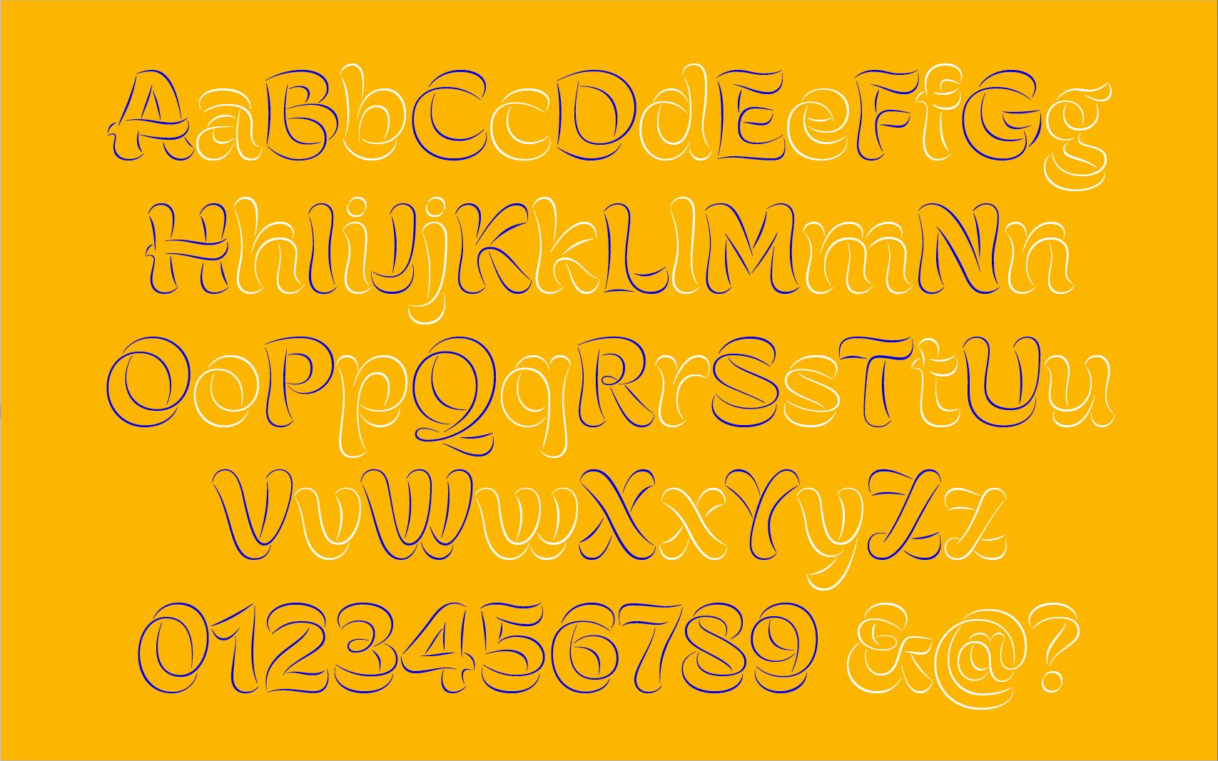 Swirl Display is a graceful outline display typeface designed by Duc during his study at Type West. The typeface is the result of the study on the flat brush's expressiveness: how the twists and turns of such a physical tool can create a dynamic and humanistic texture for a typeface. The letterforms are rounded, with tapered strokes in the middle and flared ends. Swirl was initially designed in solid form, which was later reduced to its bare, skeletal and suggestive outlines, thin and graceful. This design change makes the font bold yet airy, soft yet sharp, full yet hungry for more.